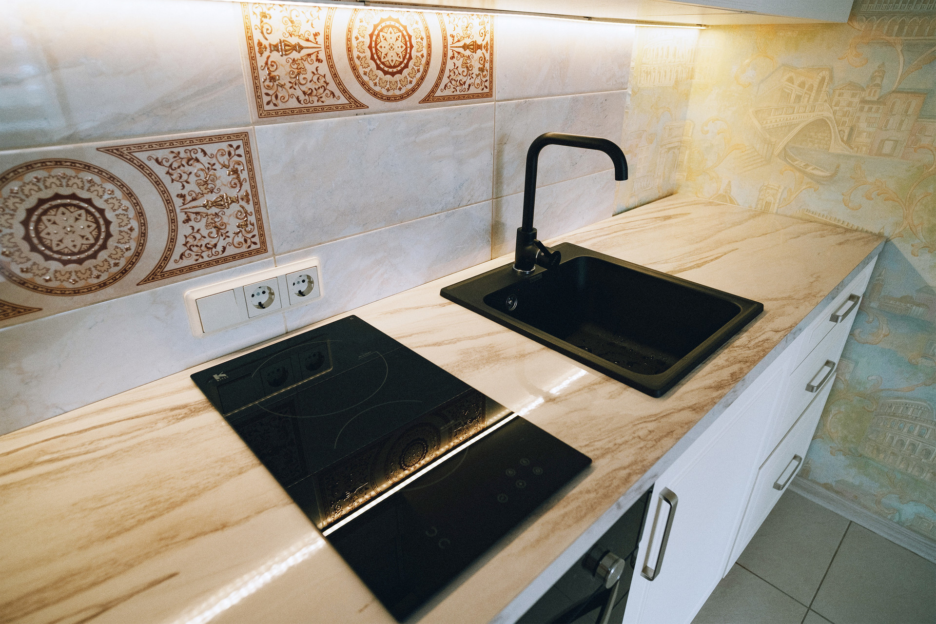 В районе есть вся необходимая инфраструктура, как социальная, так и торговая: поблизости школы, детские сады, поликлиника, магазины, кафе, фитнес-клуб и прочее-прочее-прочее, вплоть до того, что даже теннисный корт под боком. Ну и, само собой, парк, на который можно не только смотреть из окна, но и гулять по нему, заниматься спортом и просто отдыхать.
