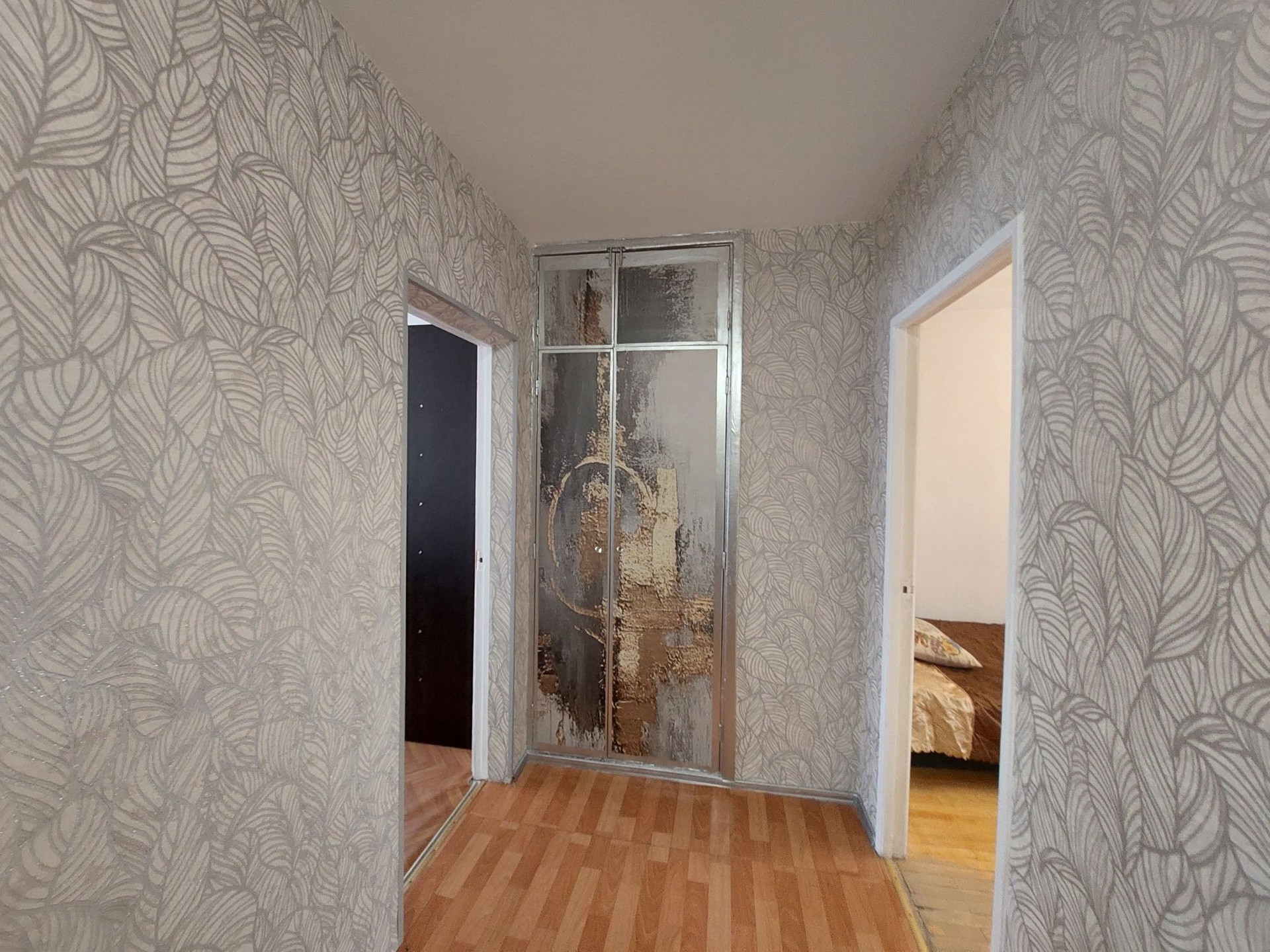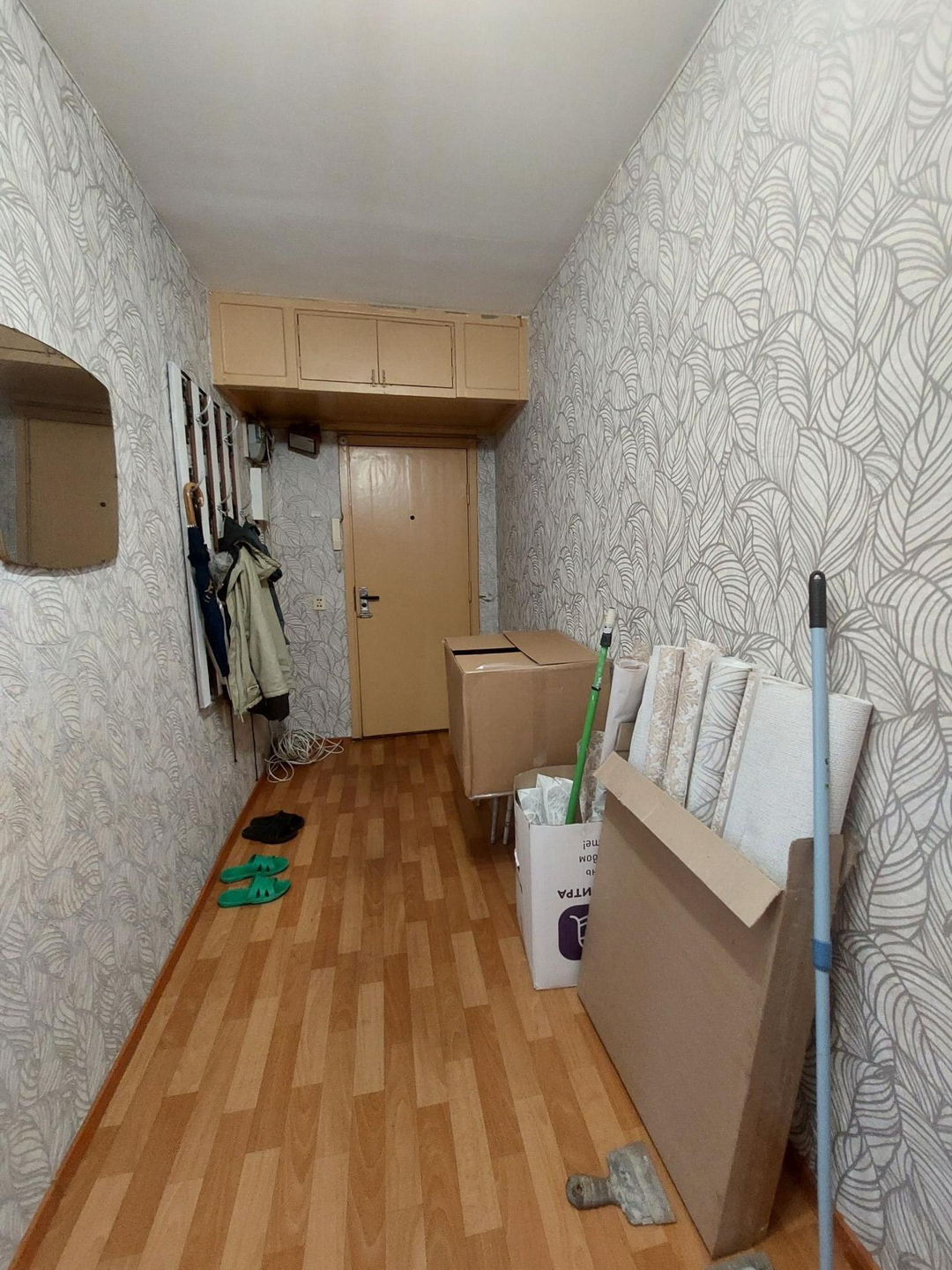 Просторный коридор, в конце коридора место для встроенного шкафа. Много мест для хранения.