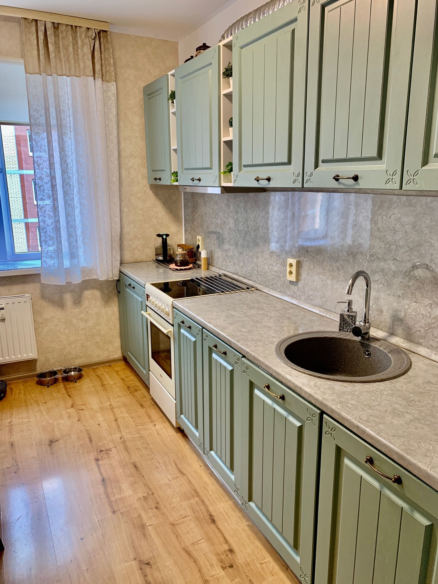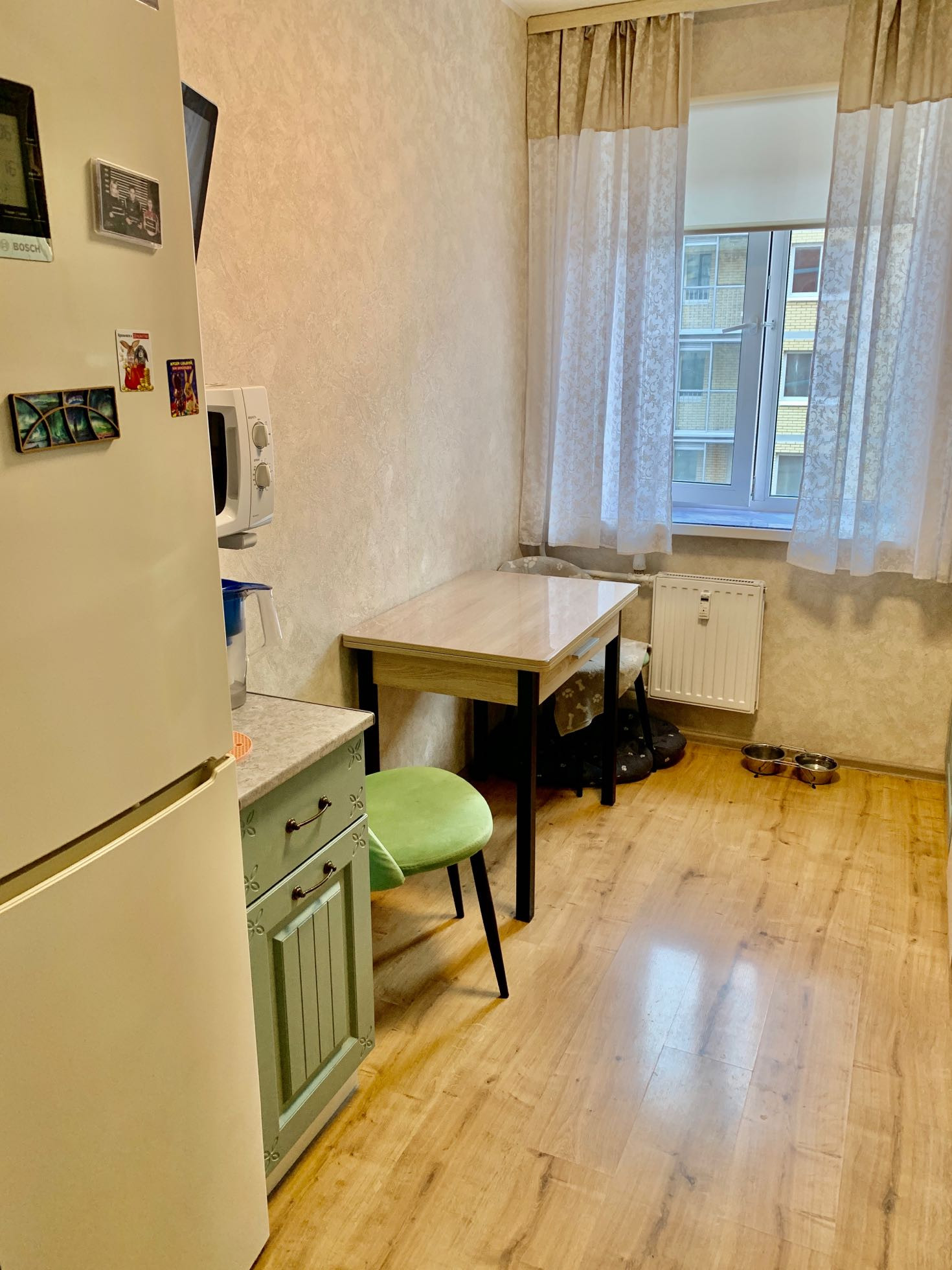 При продаже останется встроенная кухня с плитой, посудомоечной машиной, стенкой в комнате с раскладывающейся кроватью, угловым диваном в комнате, стенкой в прихожей. Остальная техника пока под вопросом.