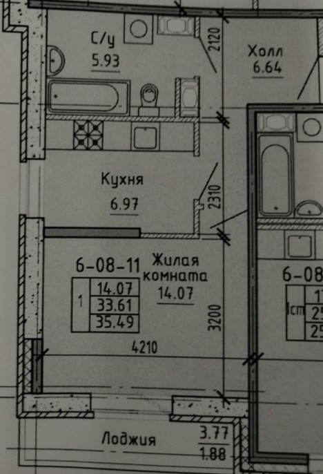 Балкон, лоджия 1 балкон