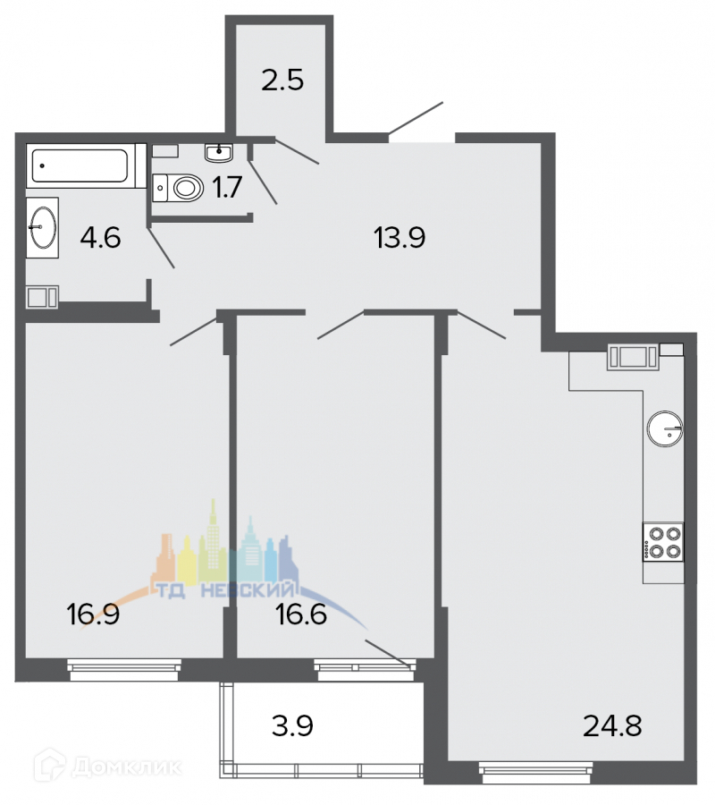 Площадь кухни 24.8 м2