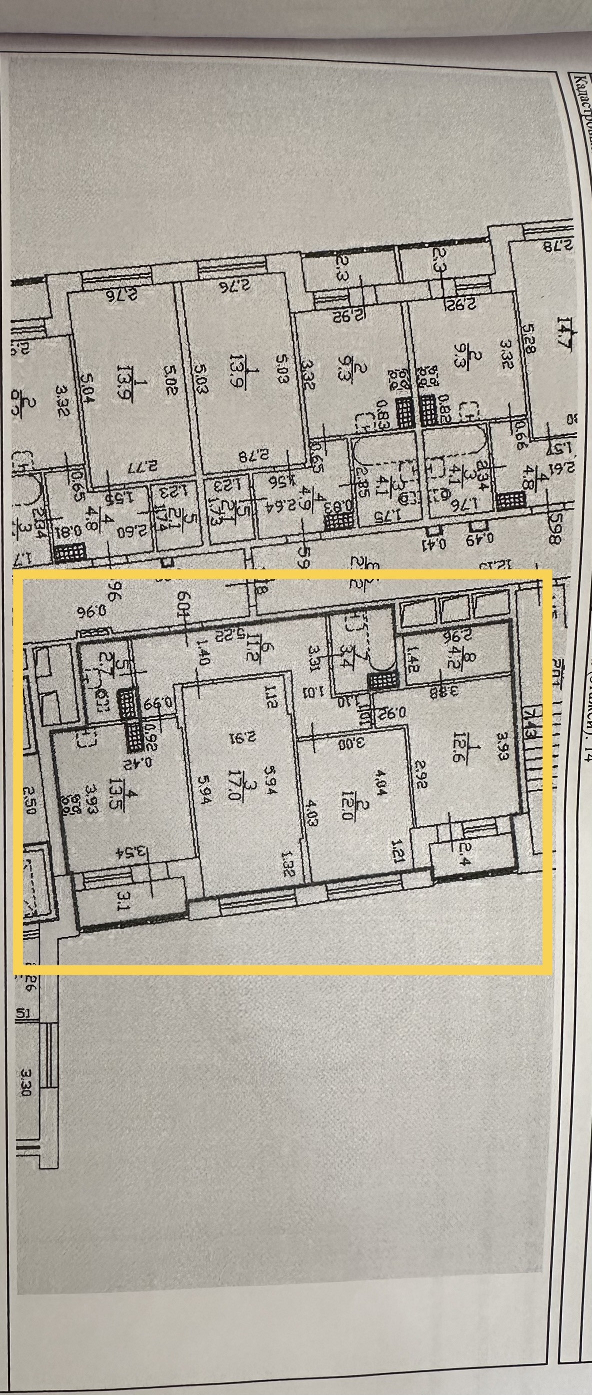 Большие  комнаты 14, 17 и 11,7 соотвественно ( сейчас редкость даже  в новых домах).