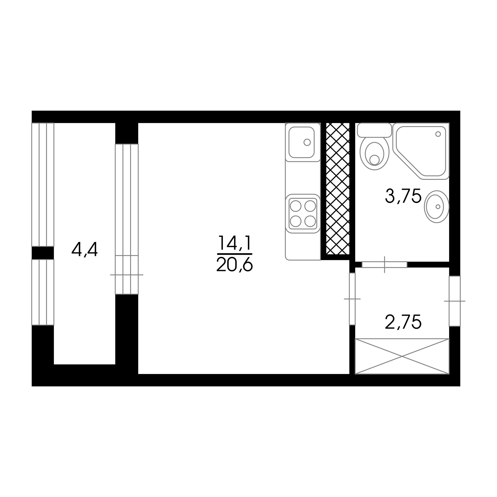Общая площадь 20.7 м2