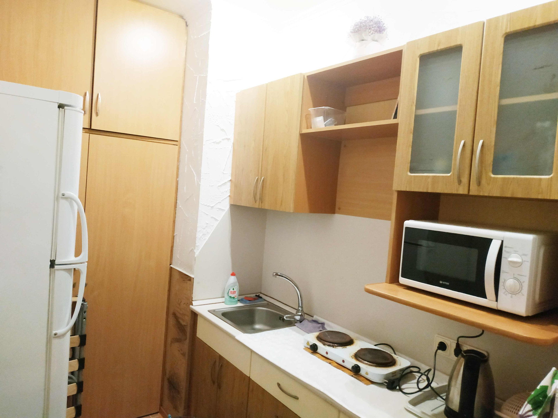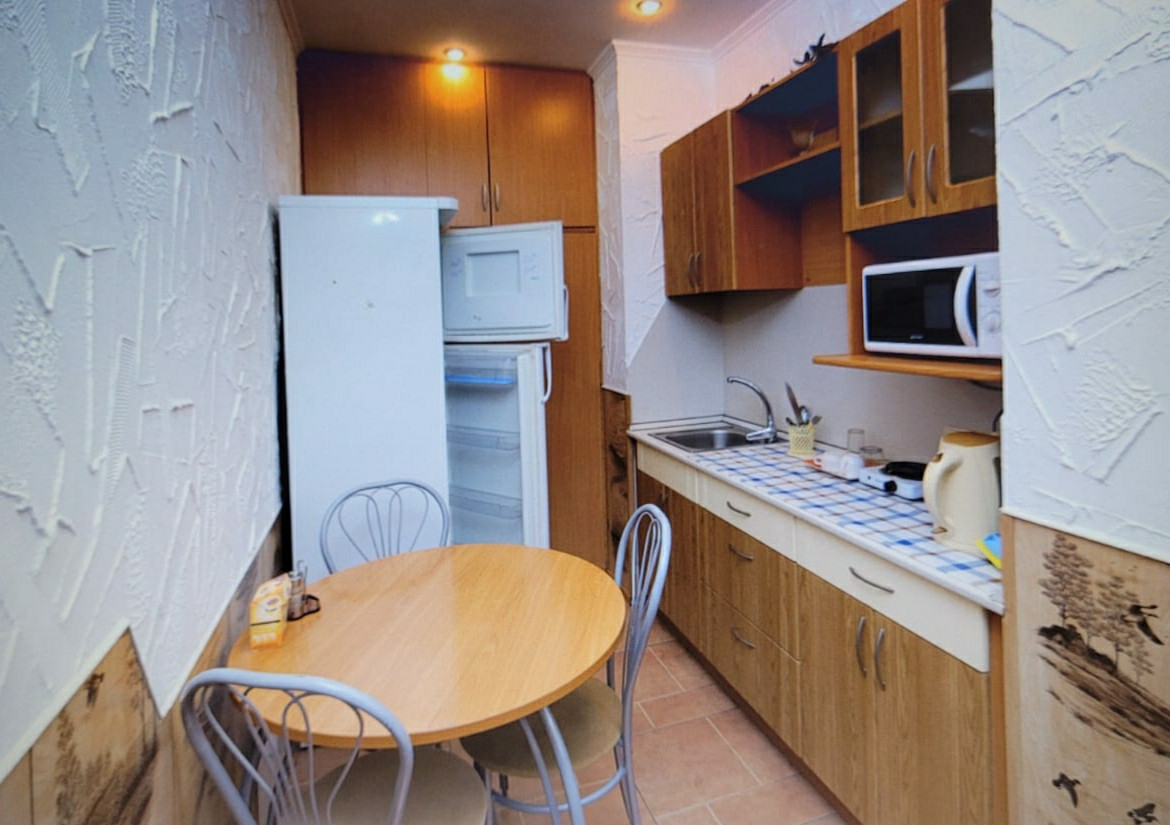 Три номера, 17+17+12, в каждом свой отдельный  санузел с душевой кабиной,  общая кухонная зона, небольшая зона отдыха.