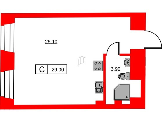 Общая площадь 29 м2