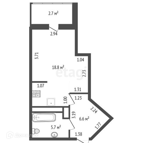 Общая площадь 31.1 м2