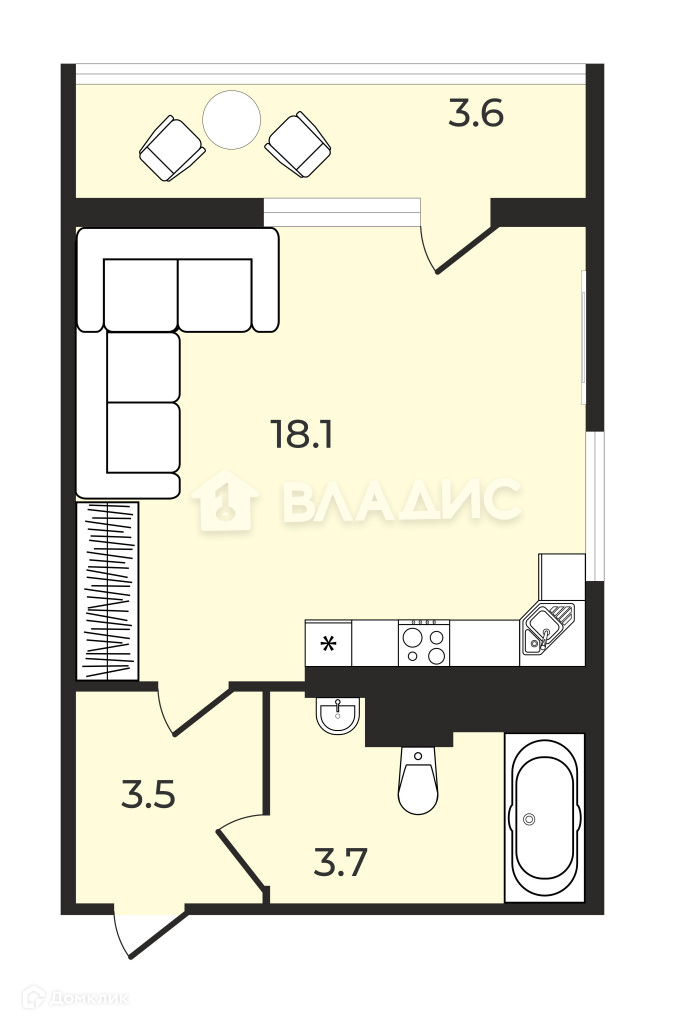 Общая площадь 25.3 м2