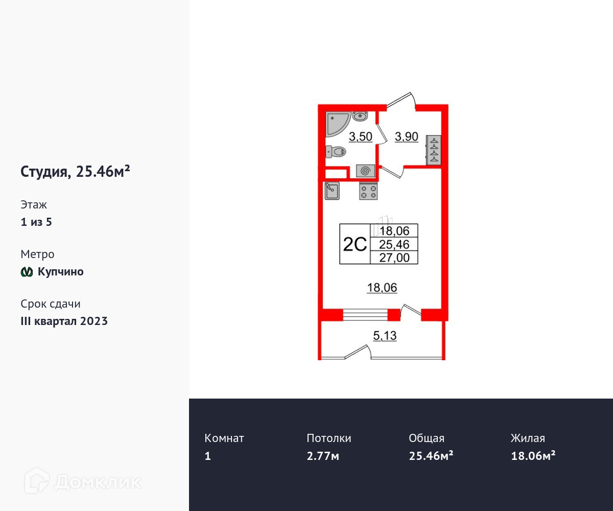 Общая площадь 25.2 м2