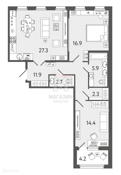 Комната 16,9 м²