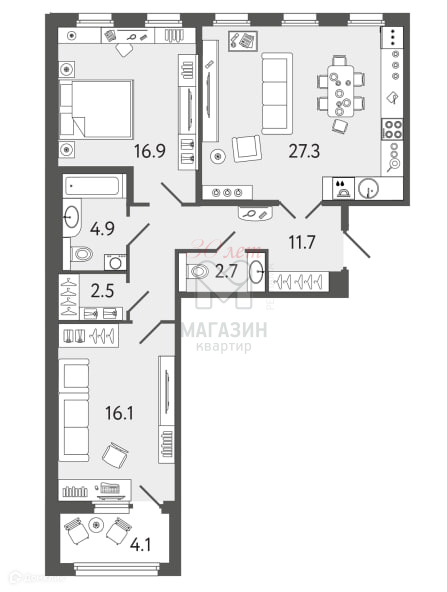 Кухня 27,3 м²