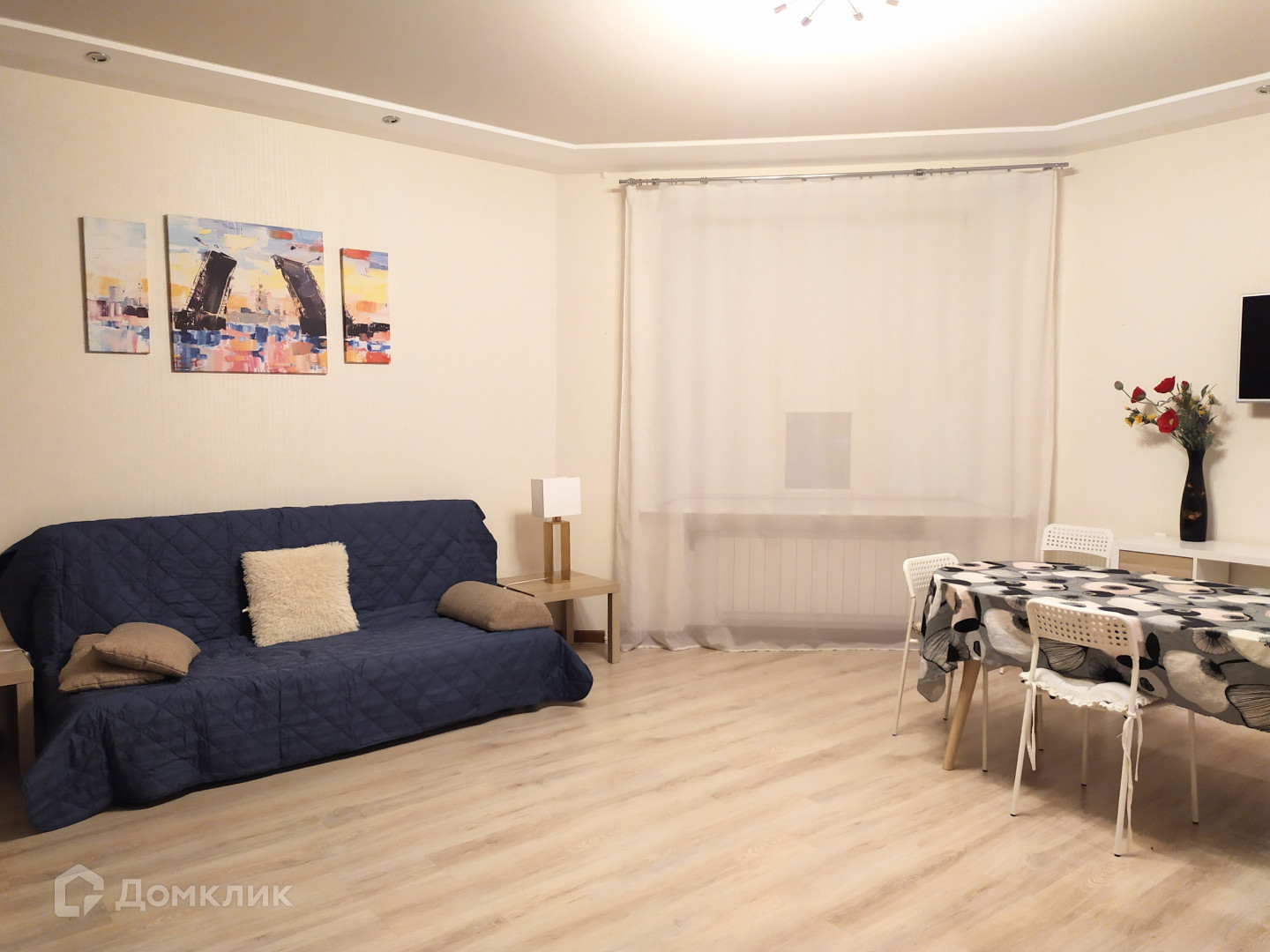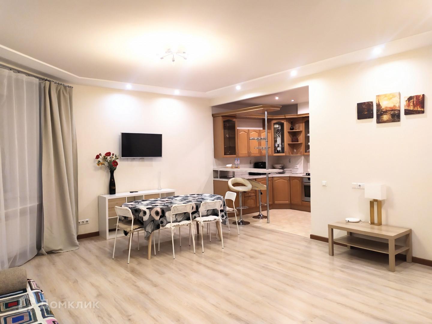 Арт. 50930713 Просторная однокомнатная квартира  56 кв.м.  В квартире все помещения просторные, вы везде чувствуете себя комфортно.  Квартира отремонтирована и оборудована основательно и качественно. Есть вся необходимая мебель и техника. Окна выходят в зелёный закрытый двор с  парковкой. Дом с железобетонными перекрытиями, 1937 года постройки.