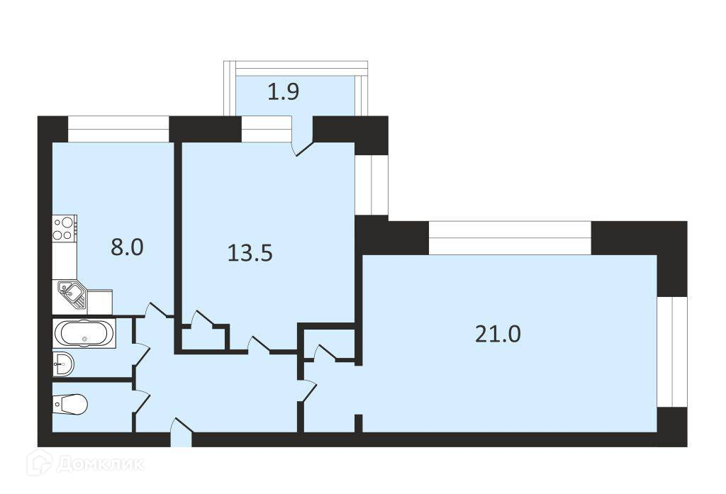 - Правильная геометрия квартиры позволит максимально просторно и комфортно разместить выбранную Вами мебель.