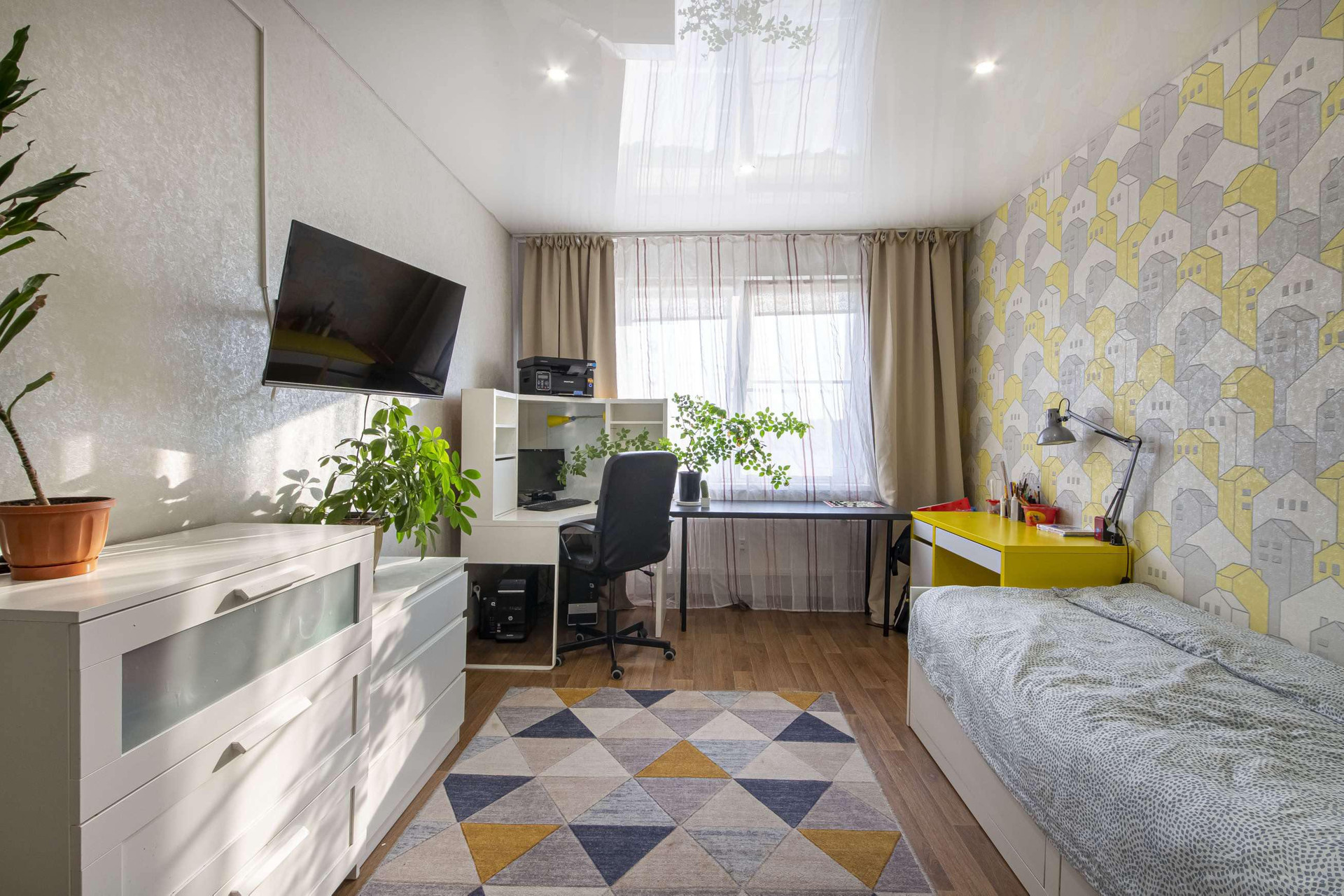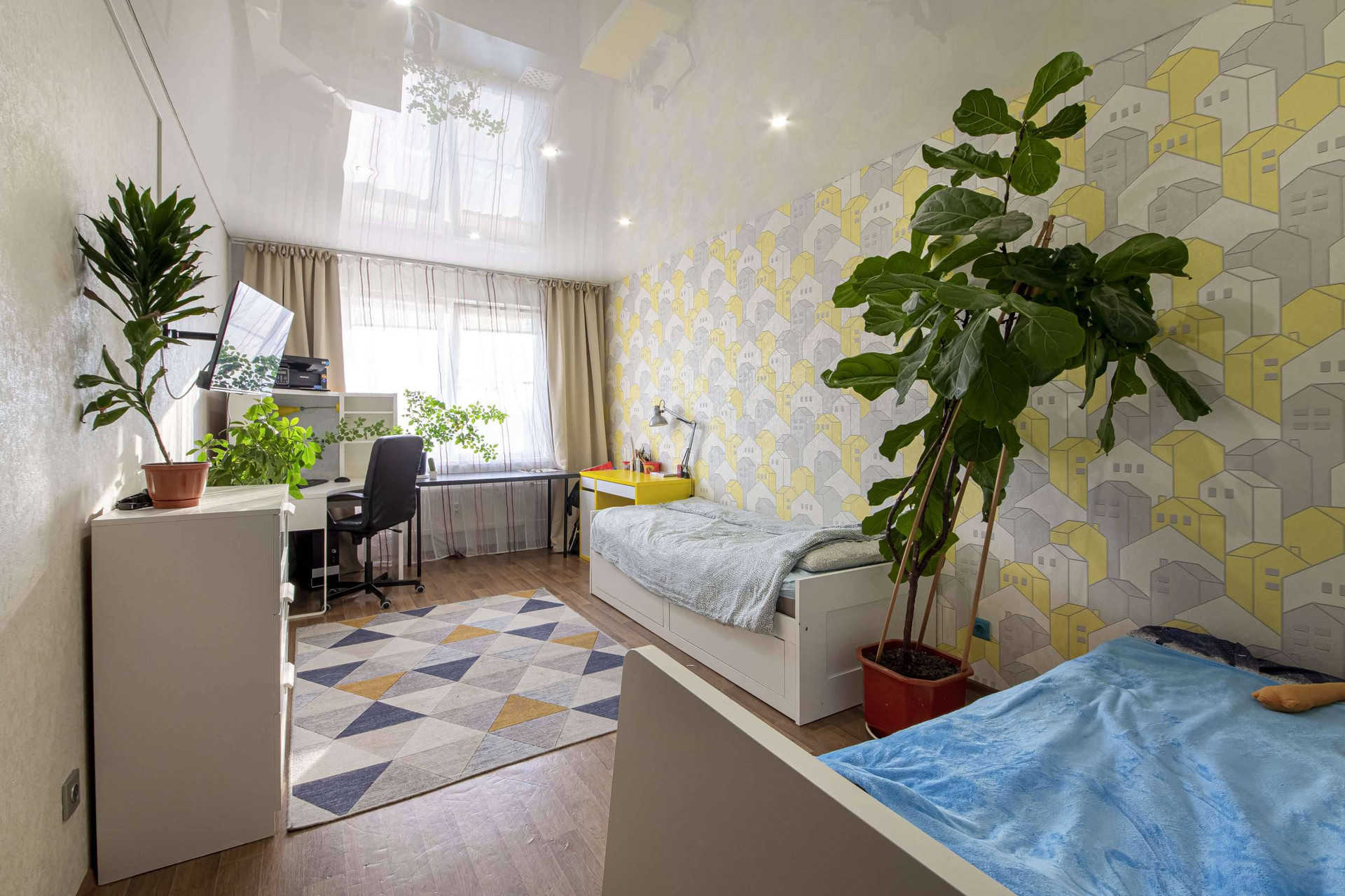 Большая комната для детской, подойдет для двух детей. Окна выходят во двор и улицу.