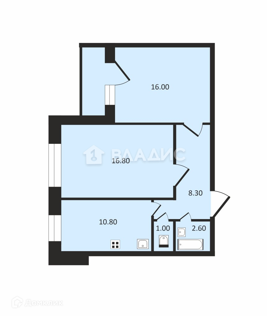 Площадь ванной: 2.6 кв.м.