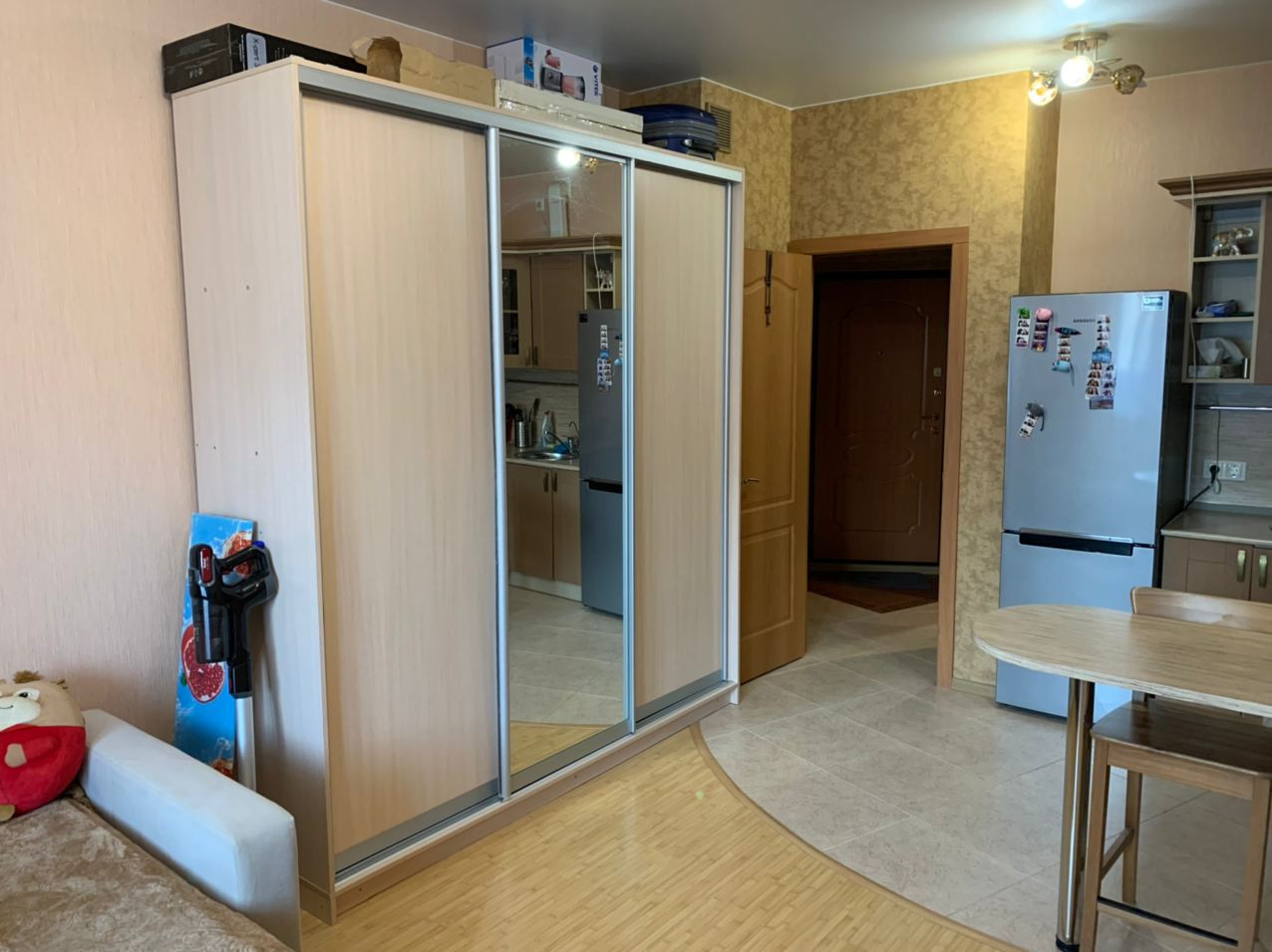 Продаётся Студия от собственника с общей площадью 26,7 кв.м. с застеклённой лоджией ~4 кв.м. Много света, в доме тепло. Выделена зона кухни. Остаётся кухонный гарнитур с варочной панелью и духовым шкафом +огромный шкаф и стиральная машина. В прошлом году обновили ванну. Идеально для 1-2 человек.