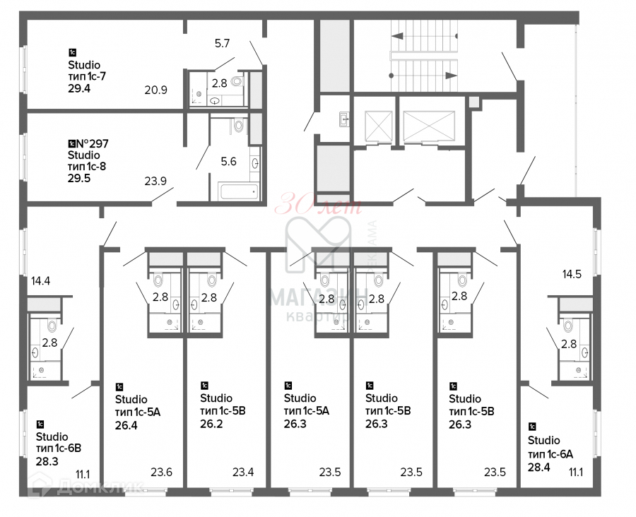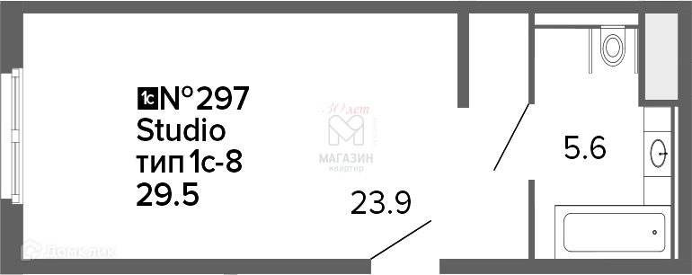 Общая площадь 29.5 м2