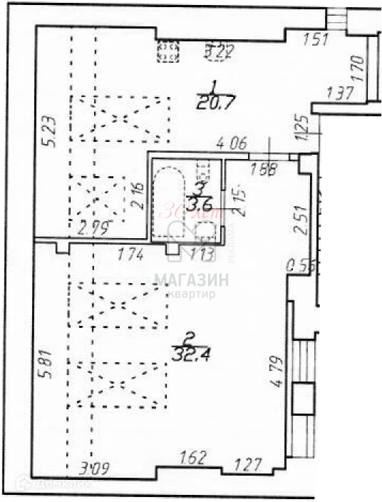 Жилая площадь 32.4 м2