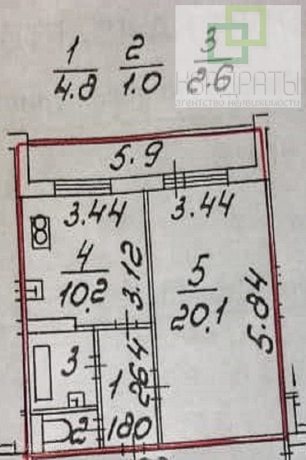 Жилая площадь 20.1 м2