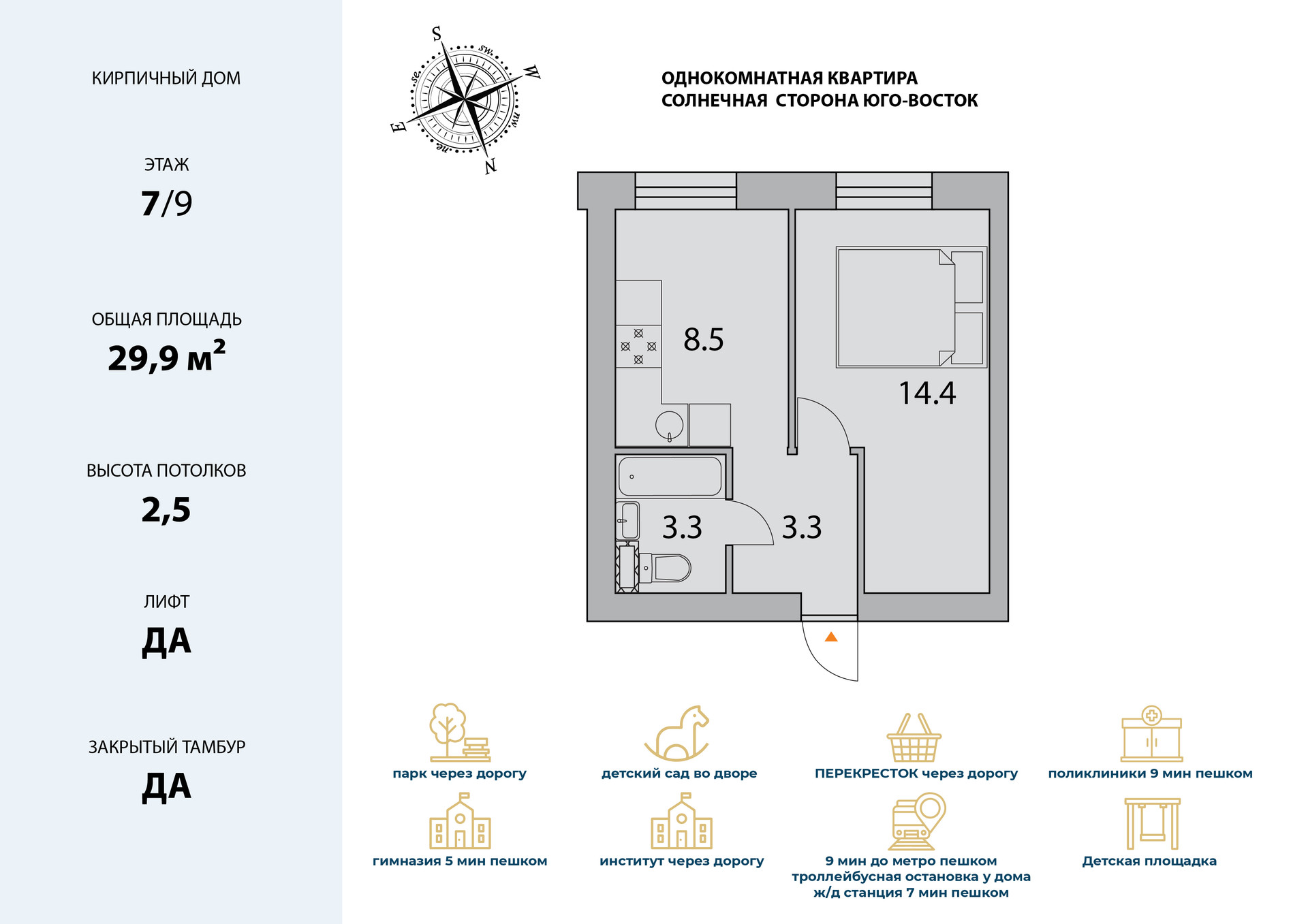 Общая площадь 29.9 м2