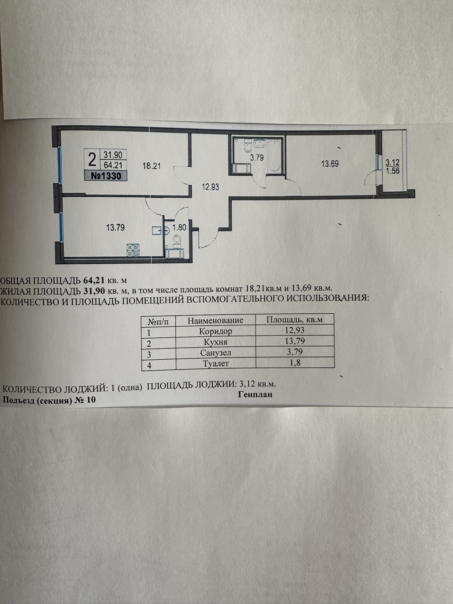 Общая площадь 64.1 м2