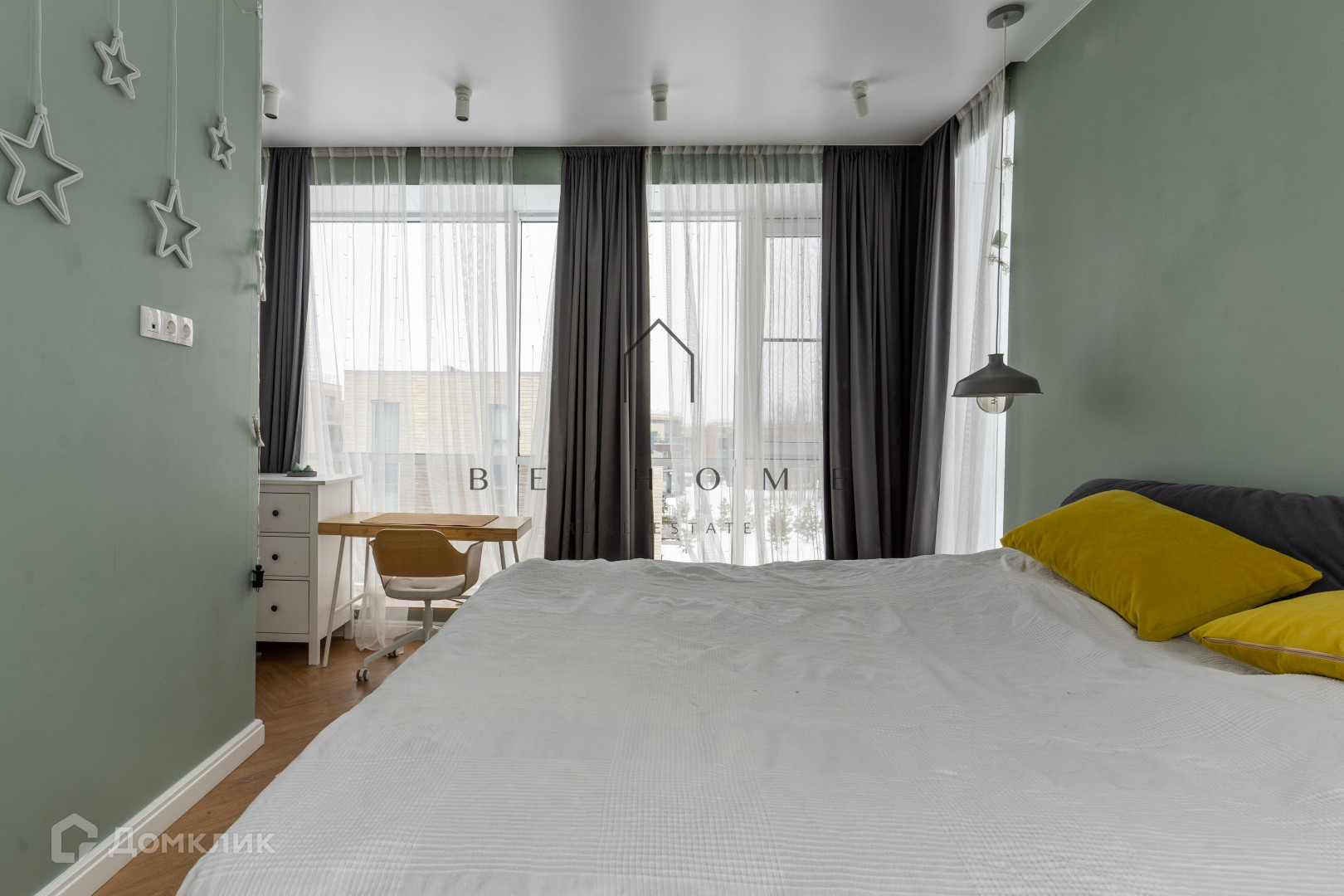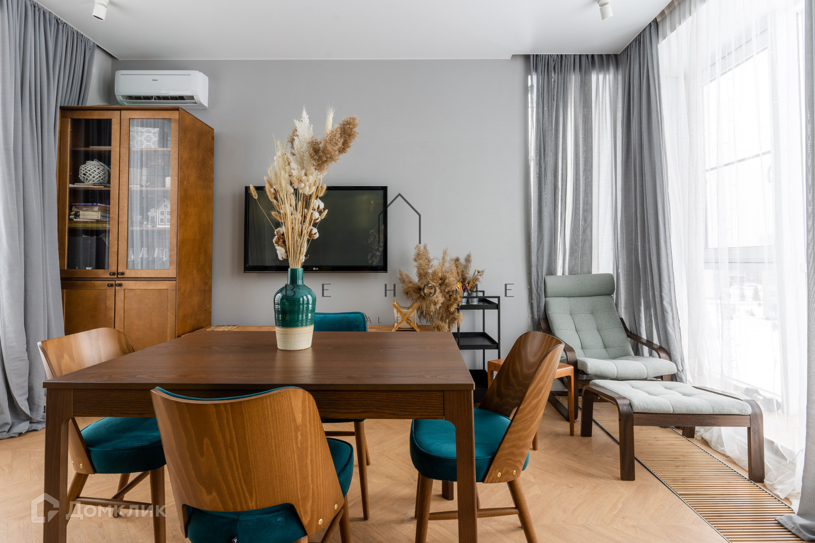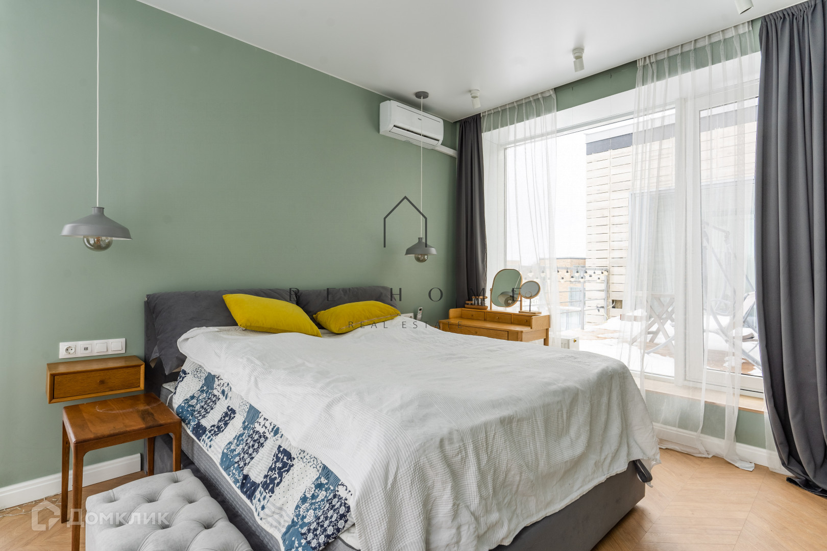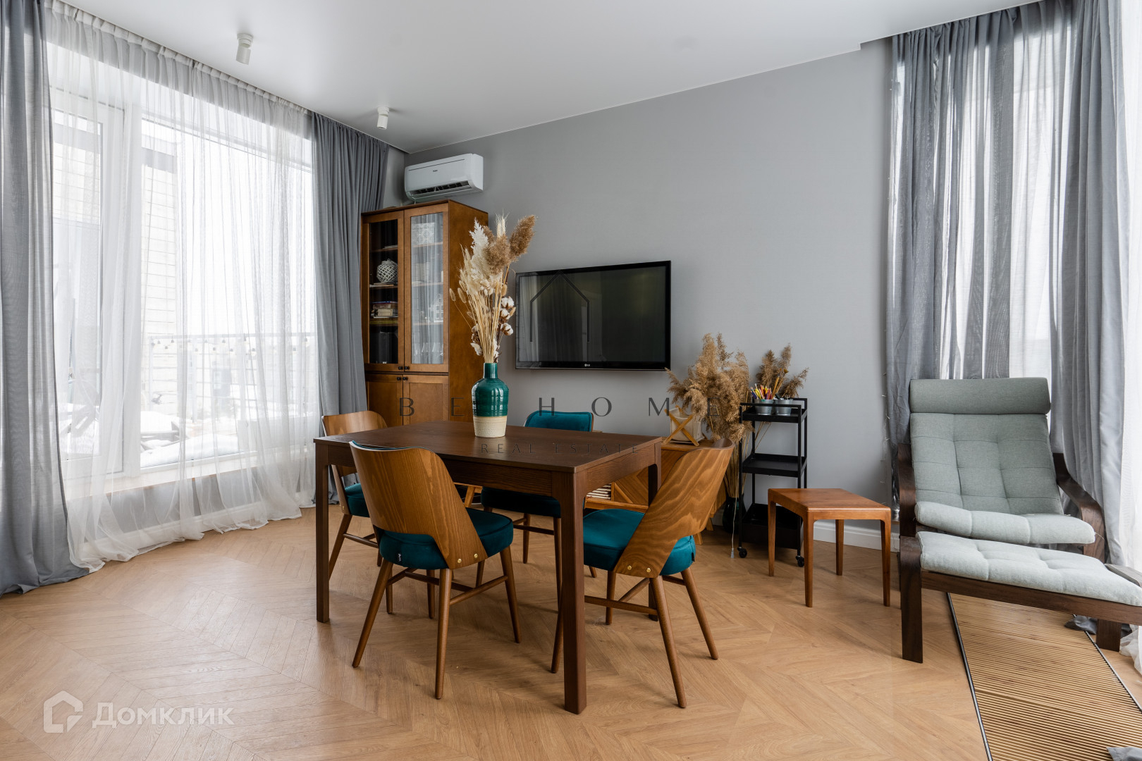 Планировка с просторной кухней, мастер-спальней с гардеробной, гостиной, двумя ванными комнатами с ванной и душевой. Две террасы и панорамное остекление. Много мест для хранения, кондиционеры во всех комнатах. Есть кладовая.