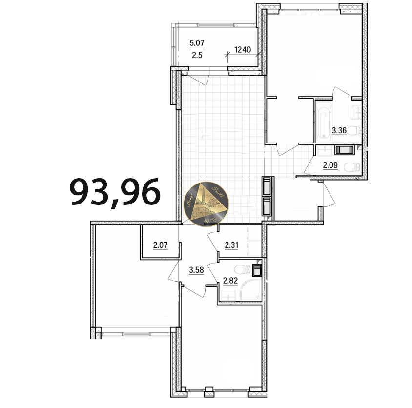 - Общая площадь квартиры 93,96 м2.