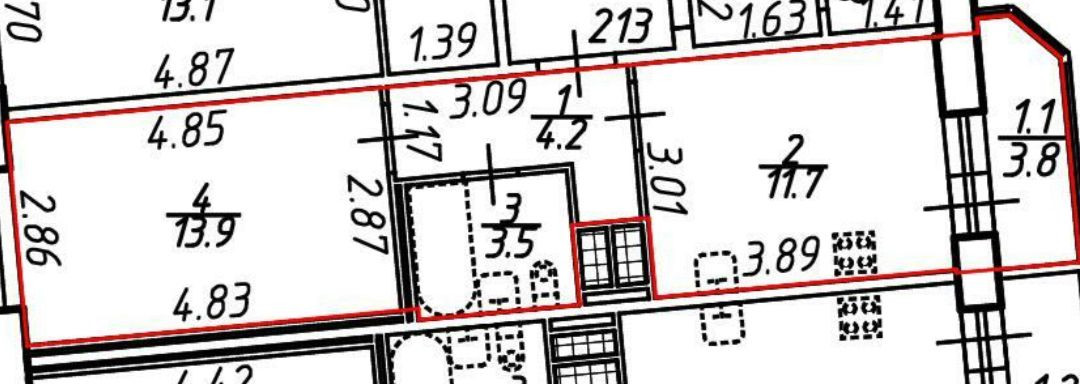 Жилая площадь 13.9 м2