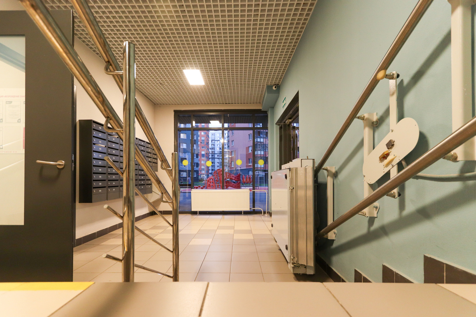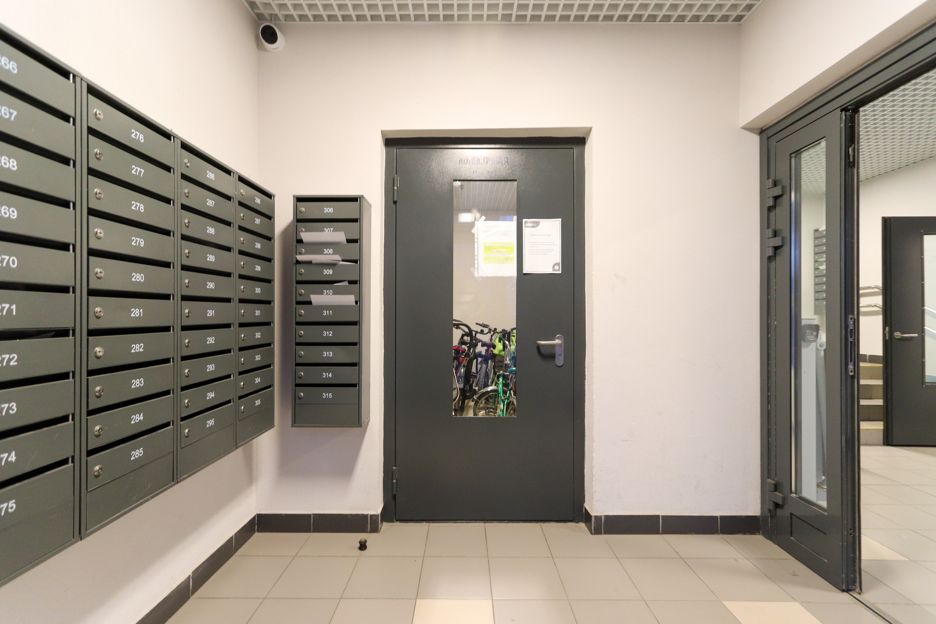 В подъезде есть колясочная.