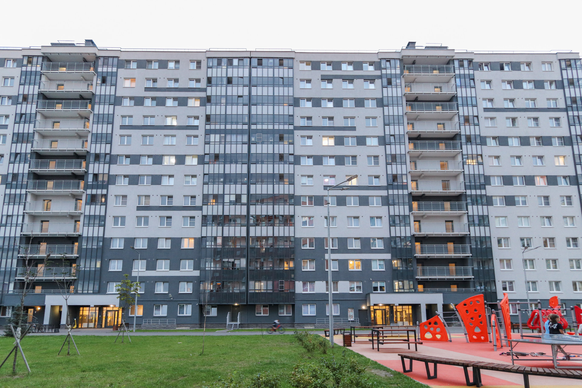 В ЖК Ручьи среднеэтажная застройка, дома до 13 этажей, что выгодно отличает его от других ЖК в городе: меньше людей, меньше машин, дома не так давят своей высотой.