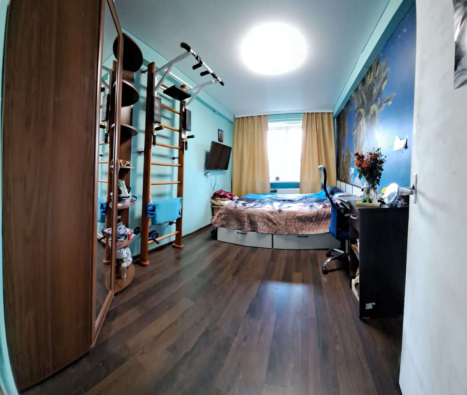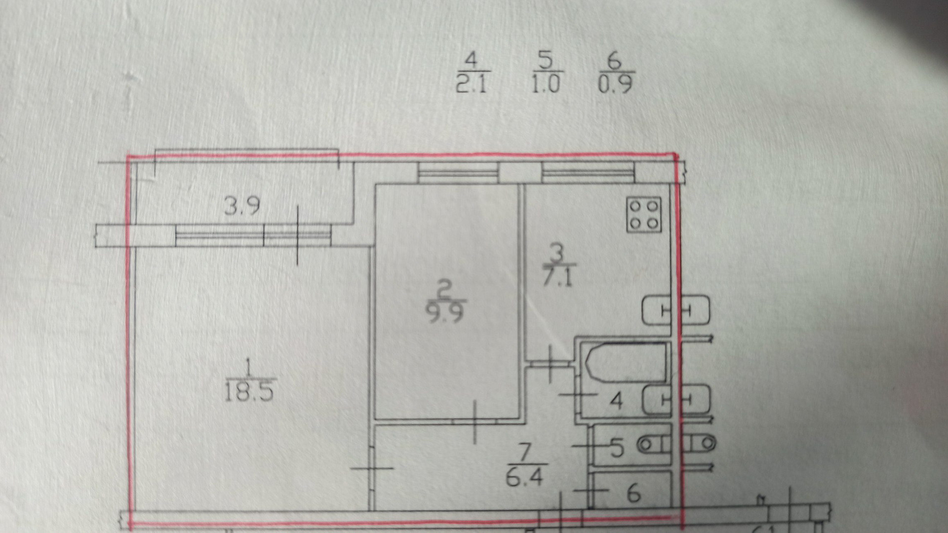 Общая площадь.45.9 кв.м, комнаты  18.5 и 9.9 кв.м, 7.1 кухня кв.м. Комнаты изолированные, санузел раздельный, большая прихожая. В 2-х комнатах и на кухне установлены стеклопакеты. В комнатах натяжные потолки. Лоджия 3.9 кв.м.(старое остекление). Есть кладовая.