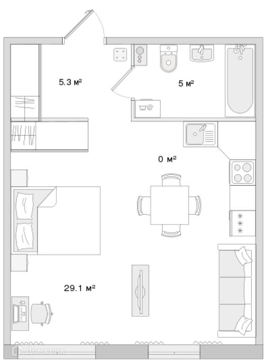 Жилая площадь 29.1 м2