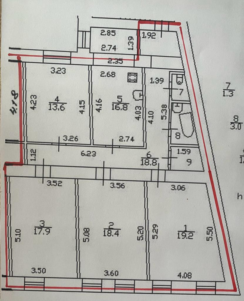 19,2 кв.м., 18,4 кв.м., 17,9 кв.м., 13,6 кв.м.