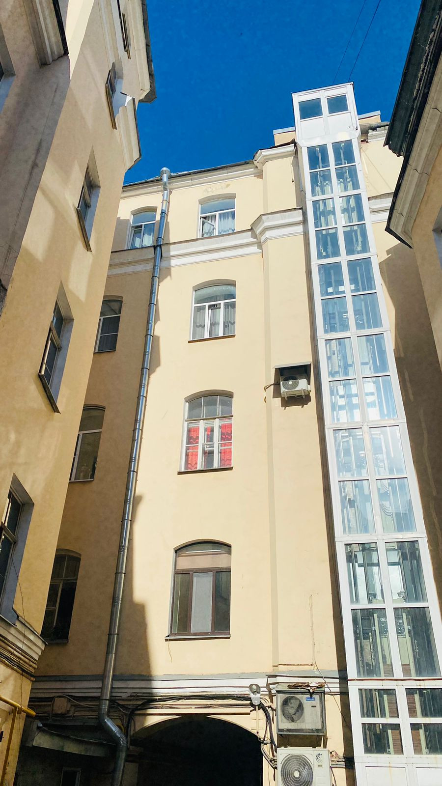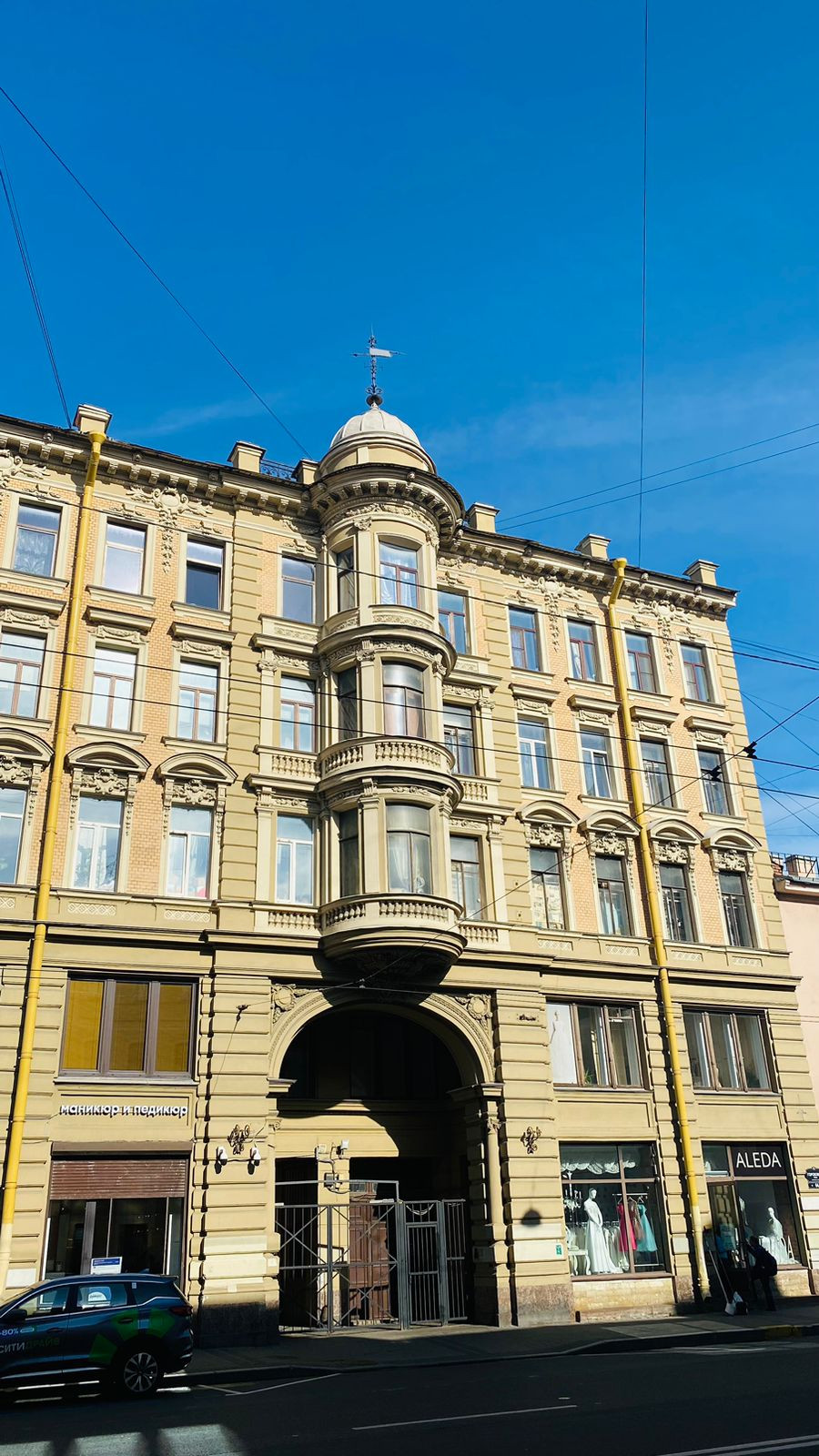 Все окна, кроме кухни выходят на Гороховую улицу. Окно кухни- во двор. Важно – двор не колодец, есть места для парковки автомобиля, за квартирой закреплено место.