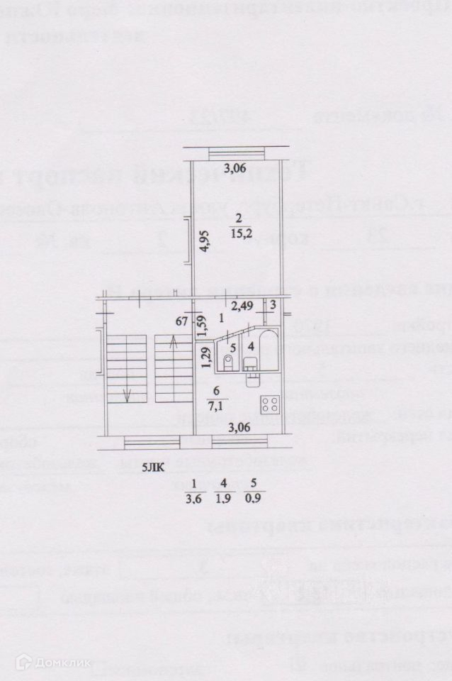 Жилая площадь 15.2 м2