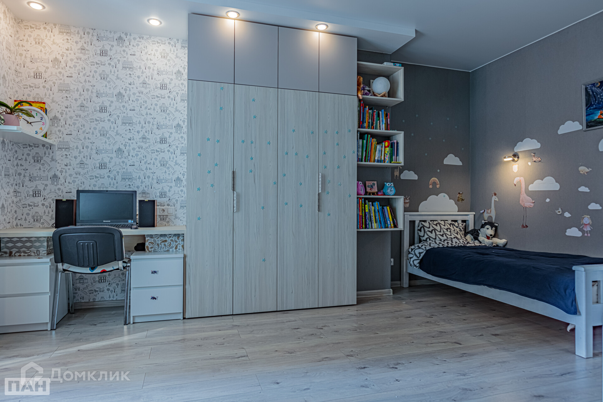 + Одна из спален спланирована для комфортного проживания одного-двух детей школьников, предусмотрены 2 рабочих места с разводкой розеток