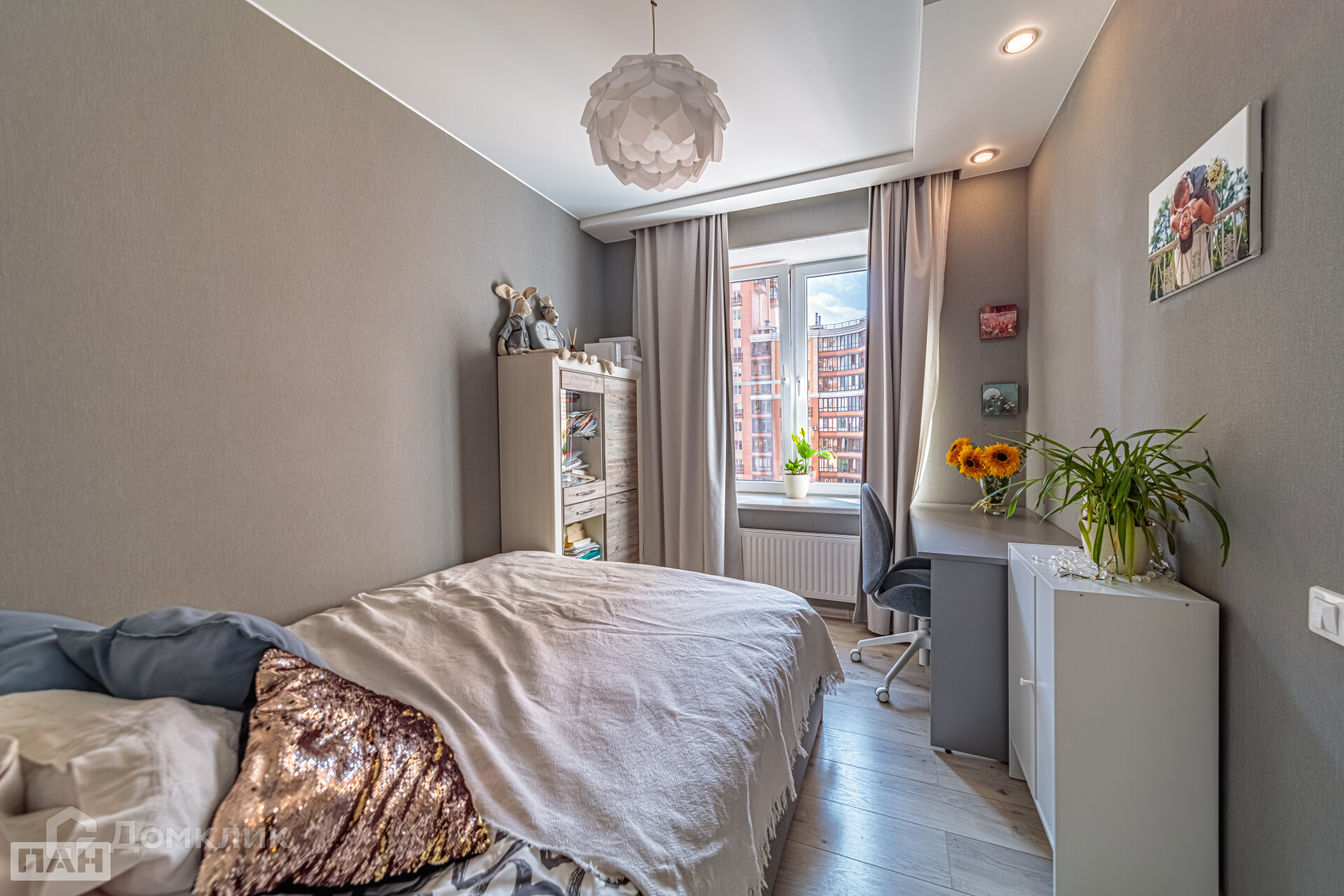 + Вторая спальня с гардеробной, есть где хранить все то, что необходимо для жизни, или можно оборудовать небольшое рабочее место;