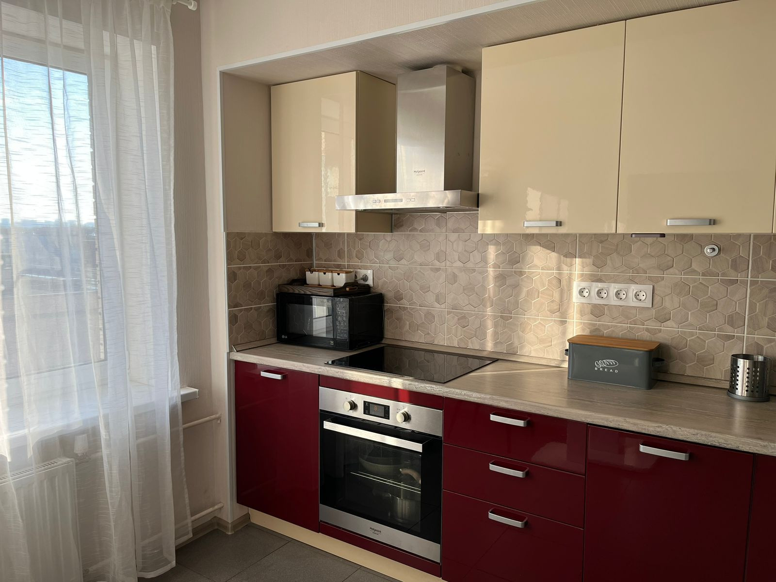 В квартире остается кухонный гарнитур с встроенной техникой и часть мебели.