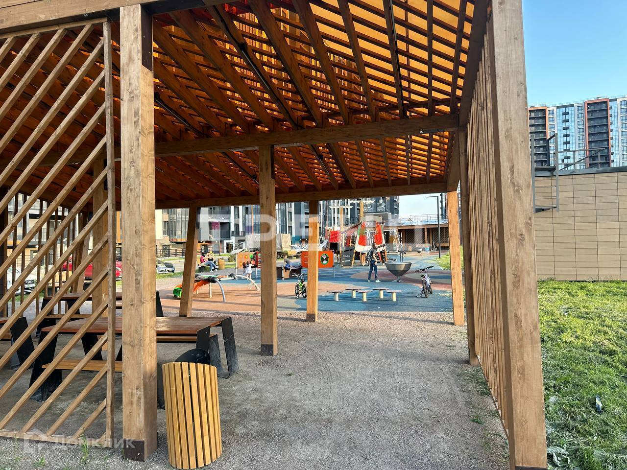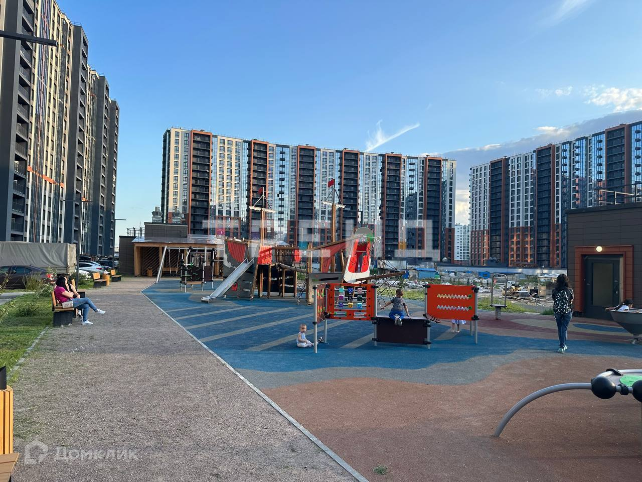Придомовая территория комплекса будет озеленена, на ней уже установлено освещение, выстроена детская площадка и обустроили прогулочную зону. (Подробнее на фото).