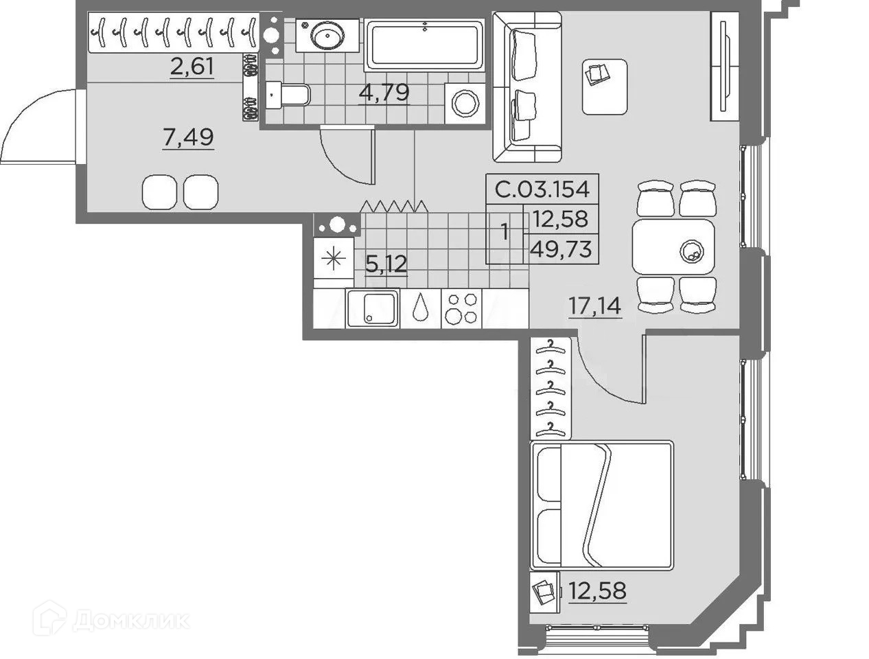 Жилая площадь 12.6 м2