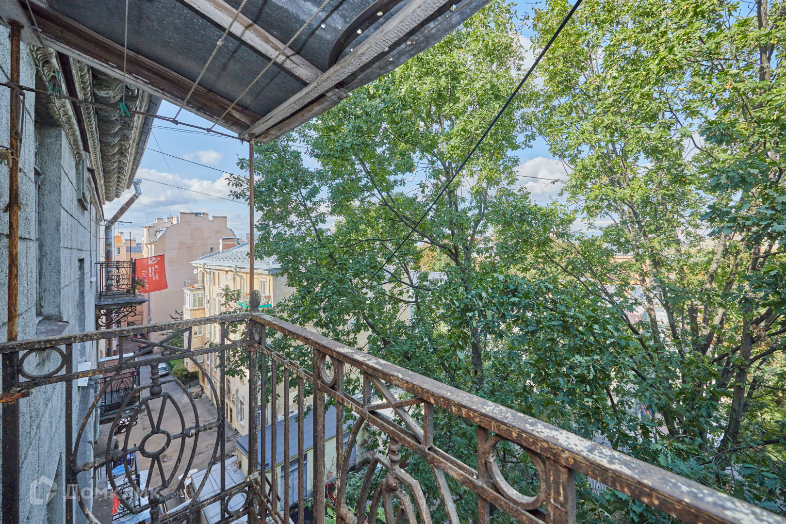 Шикарный вид в зеленый двор и крыши города!