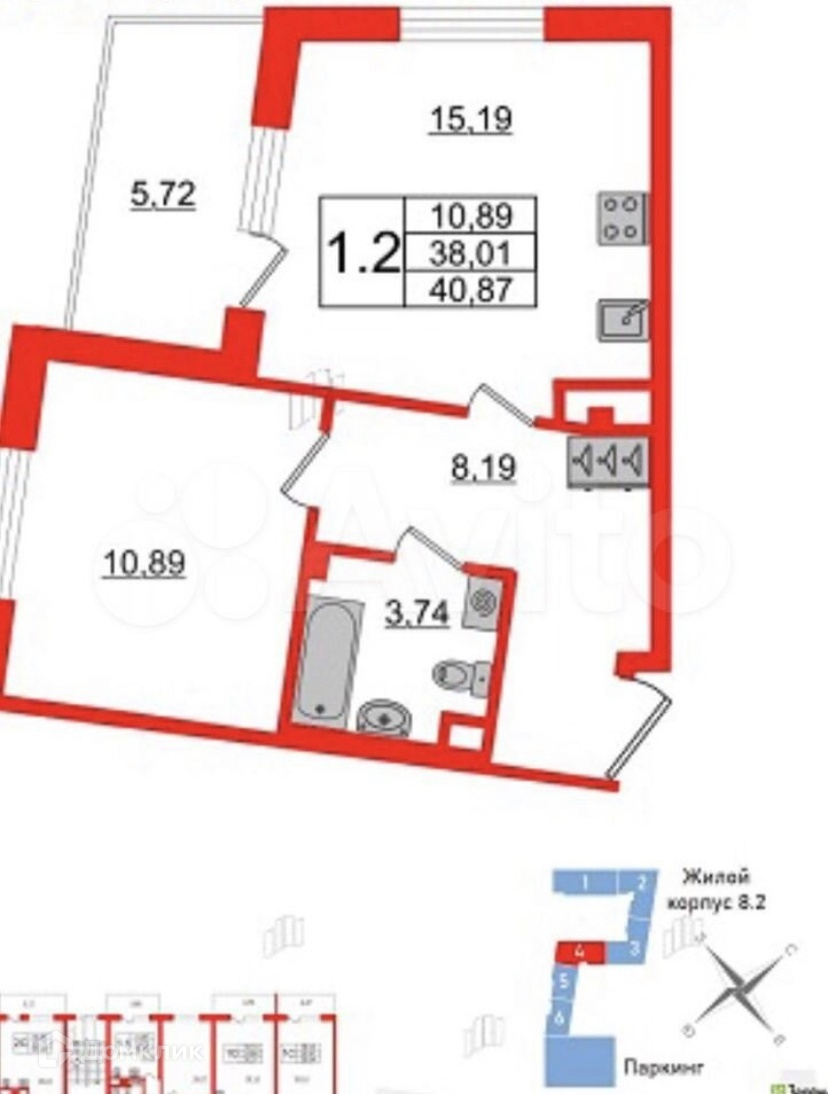 Общая площадь 38.1 м2