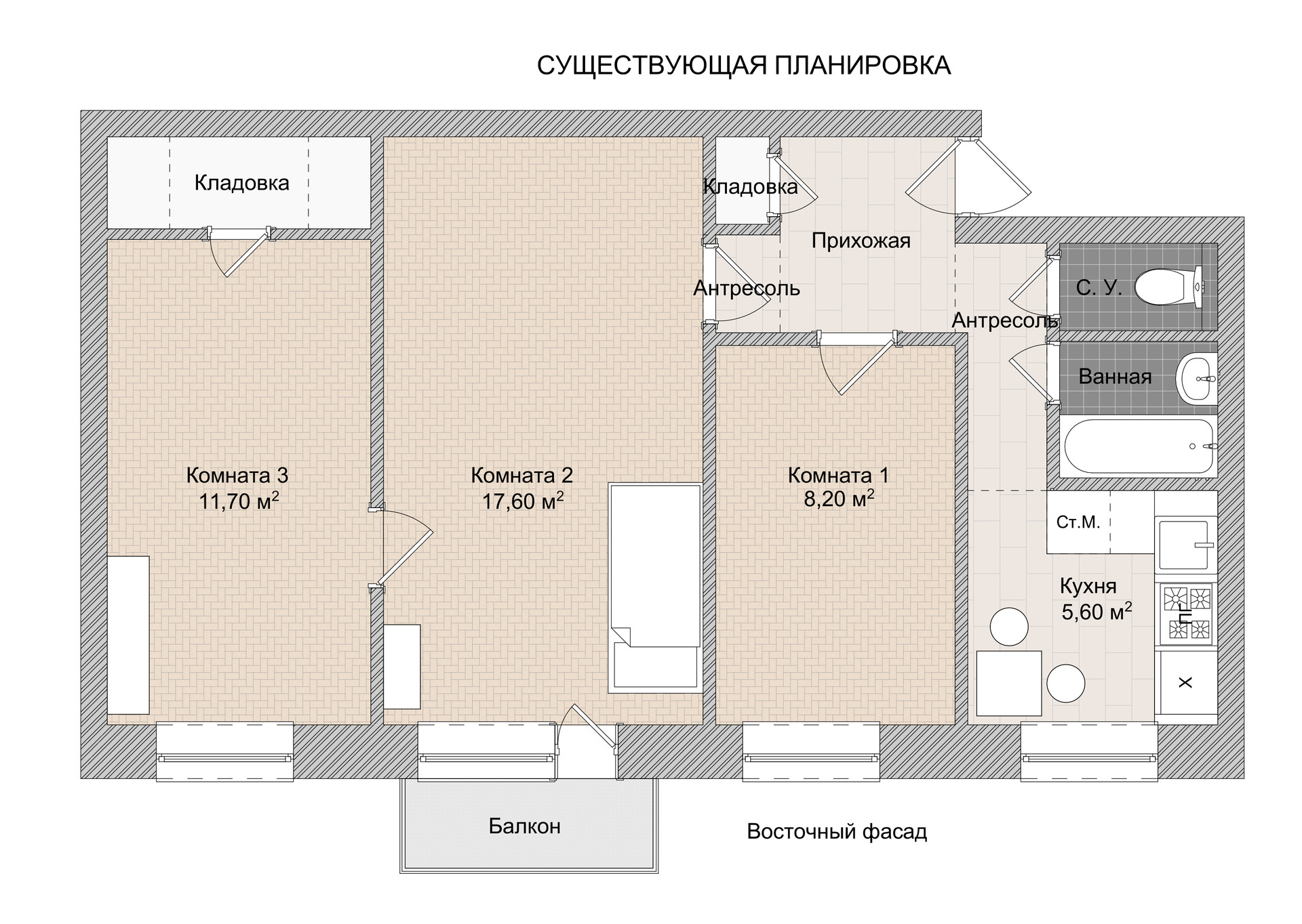 Очень светлая (восточный фасад), комфортная, с компактной, но удобной