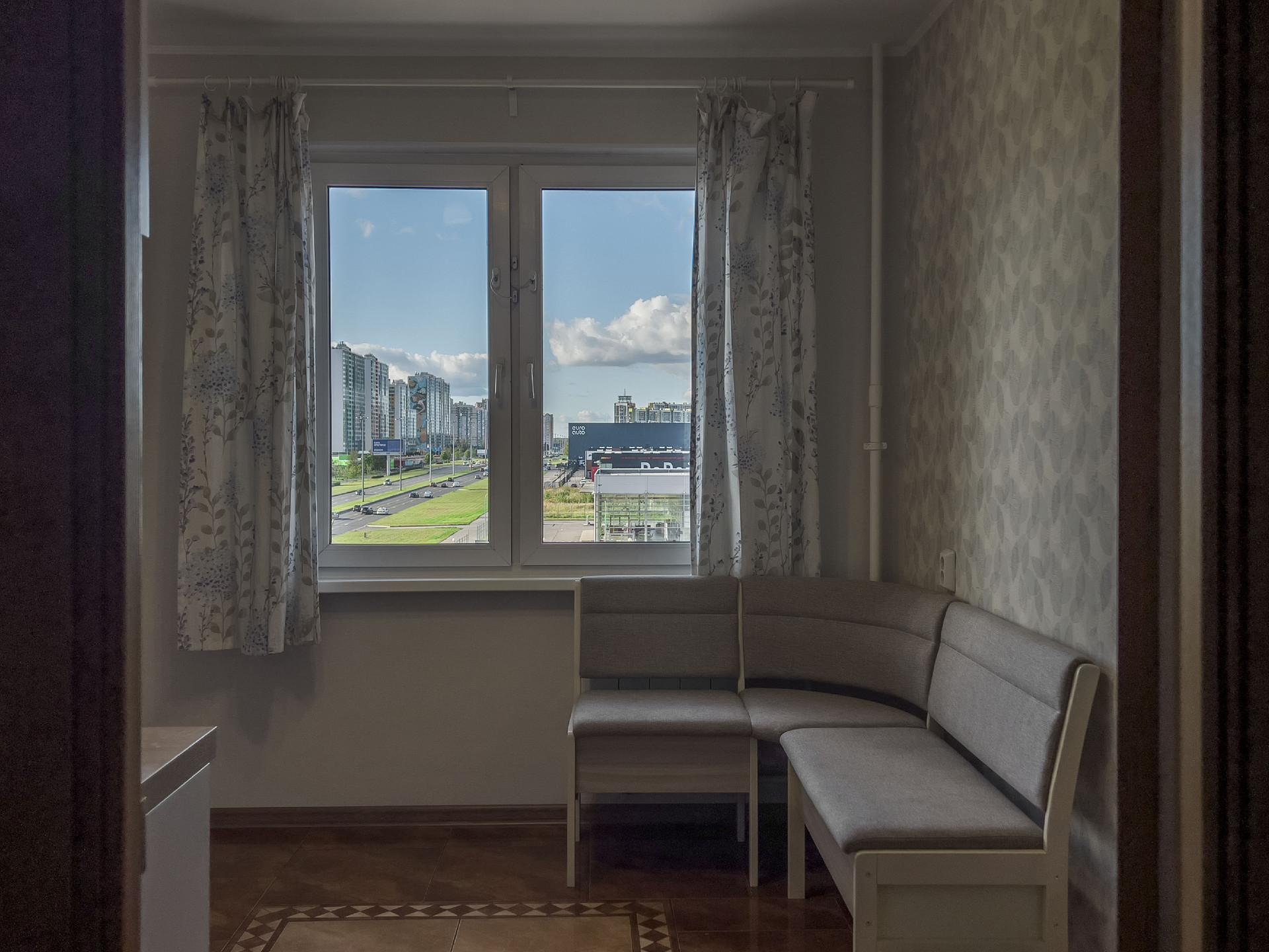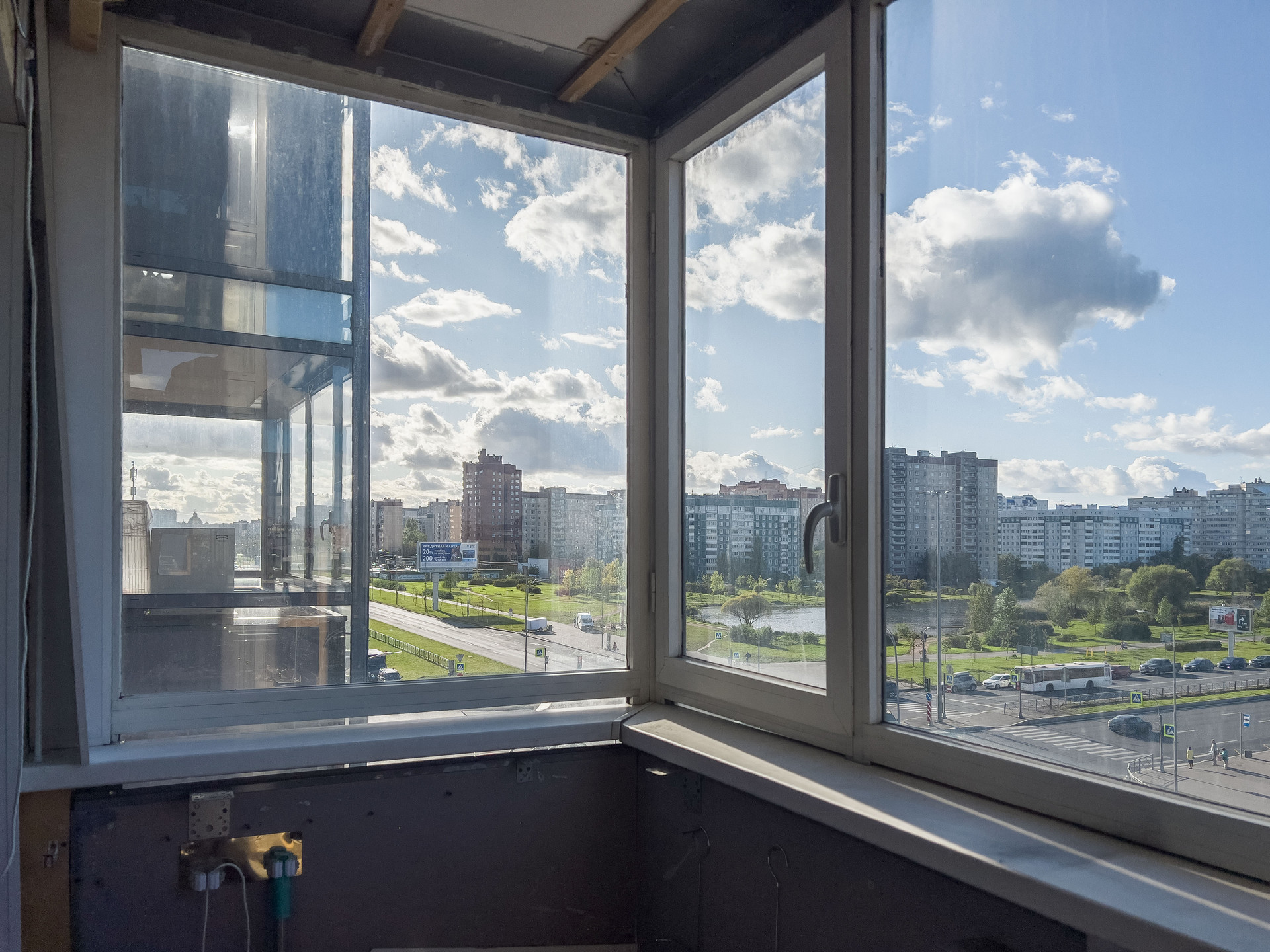 Окна на улицу, на северо-запад. Вид на Мартыновский сквер и закаты.