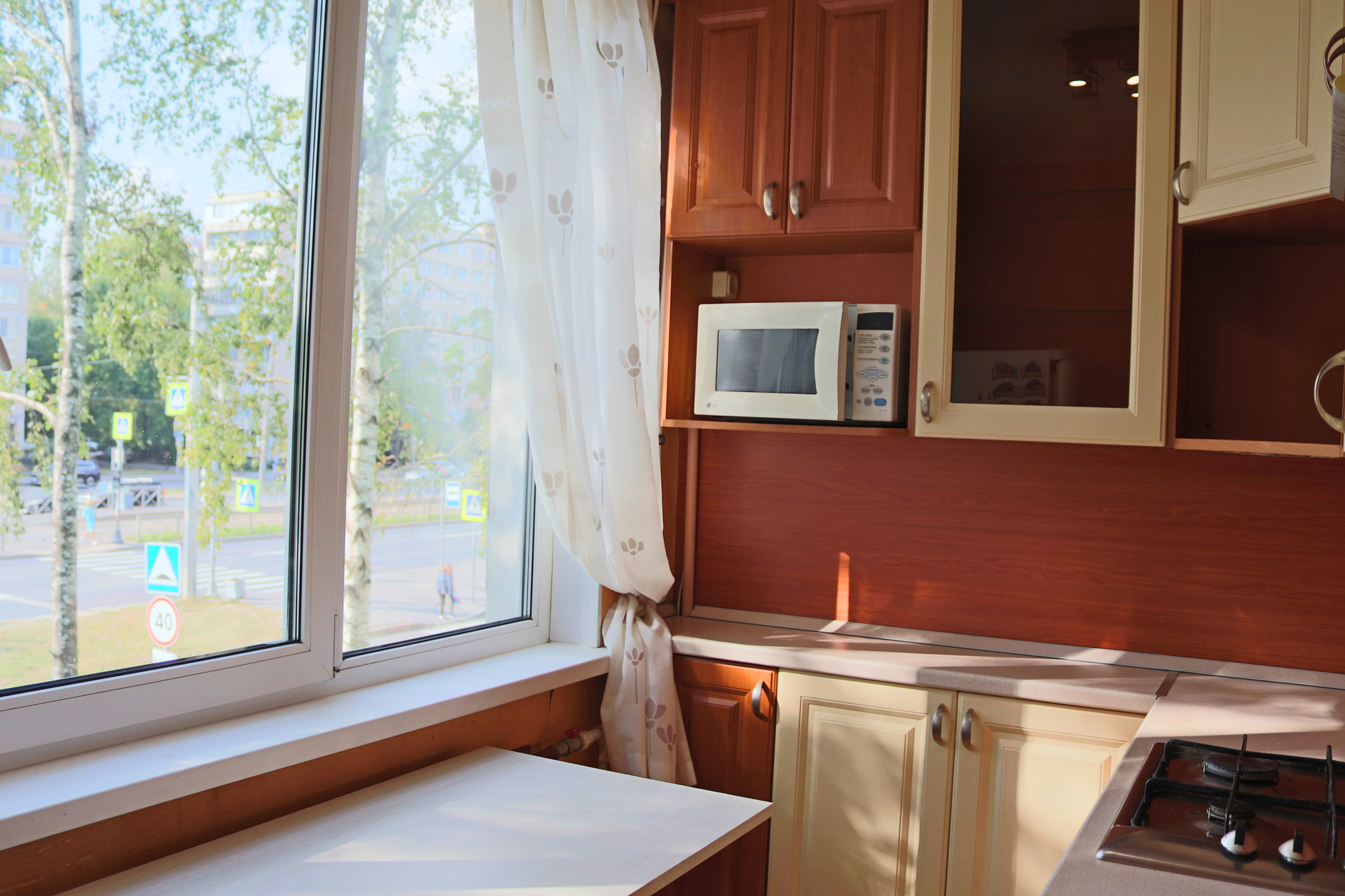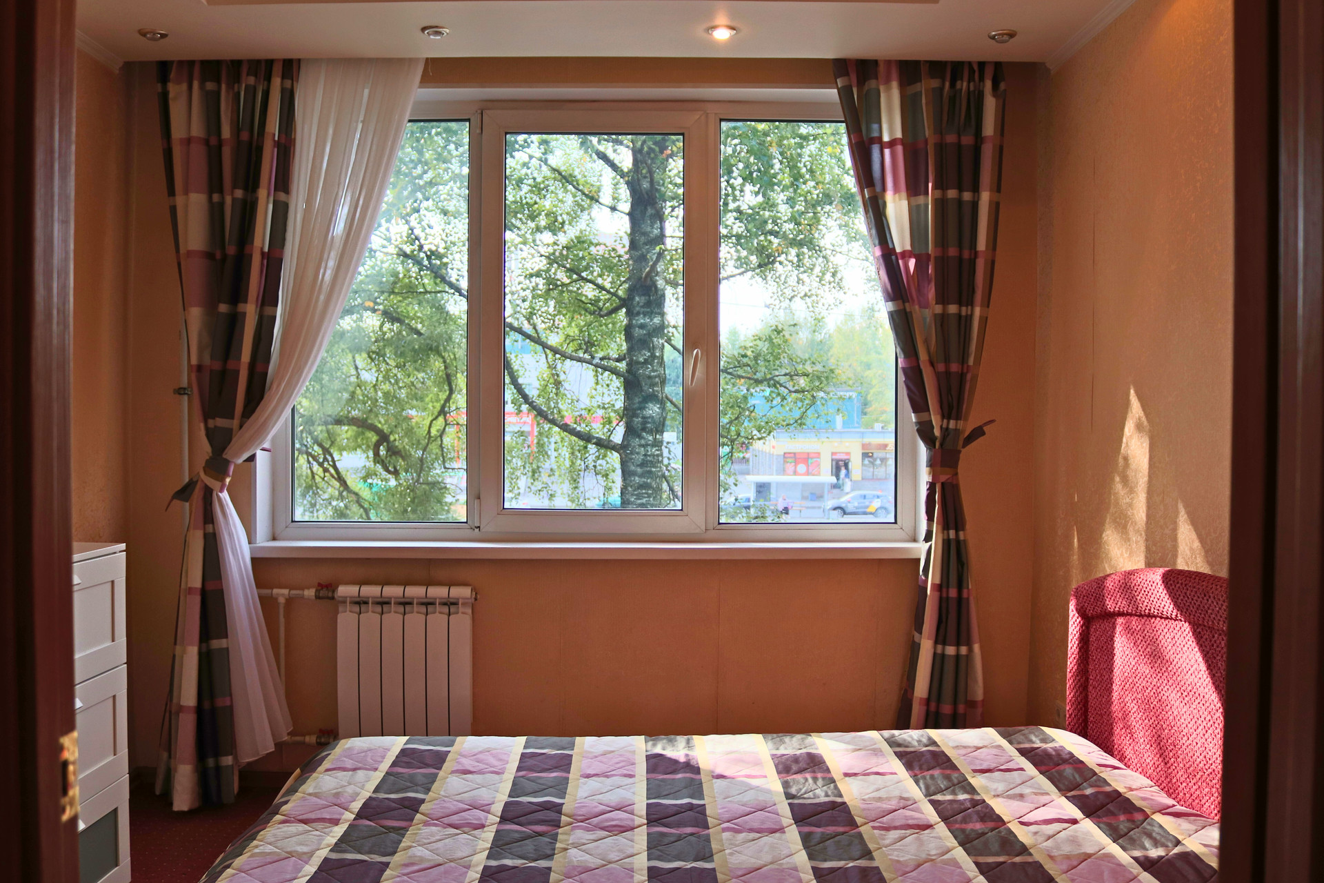 На окнах хорошие двойные стеклопакеты, окна выходят на улицу, сторона света юго-запад