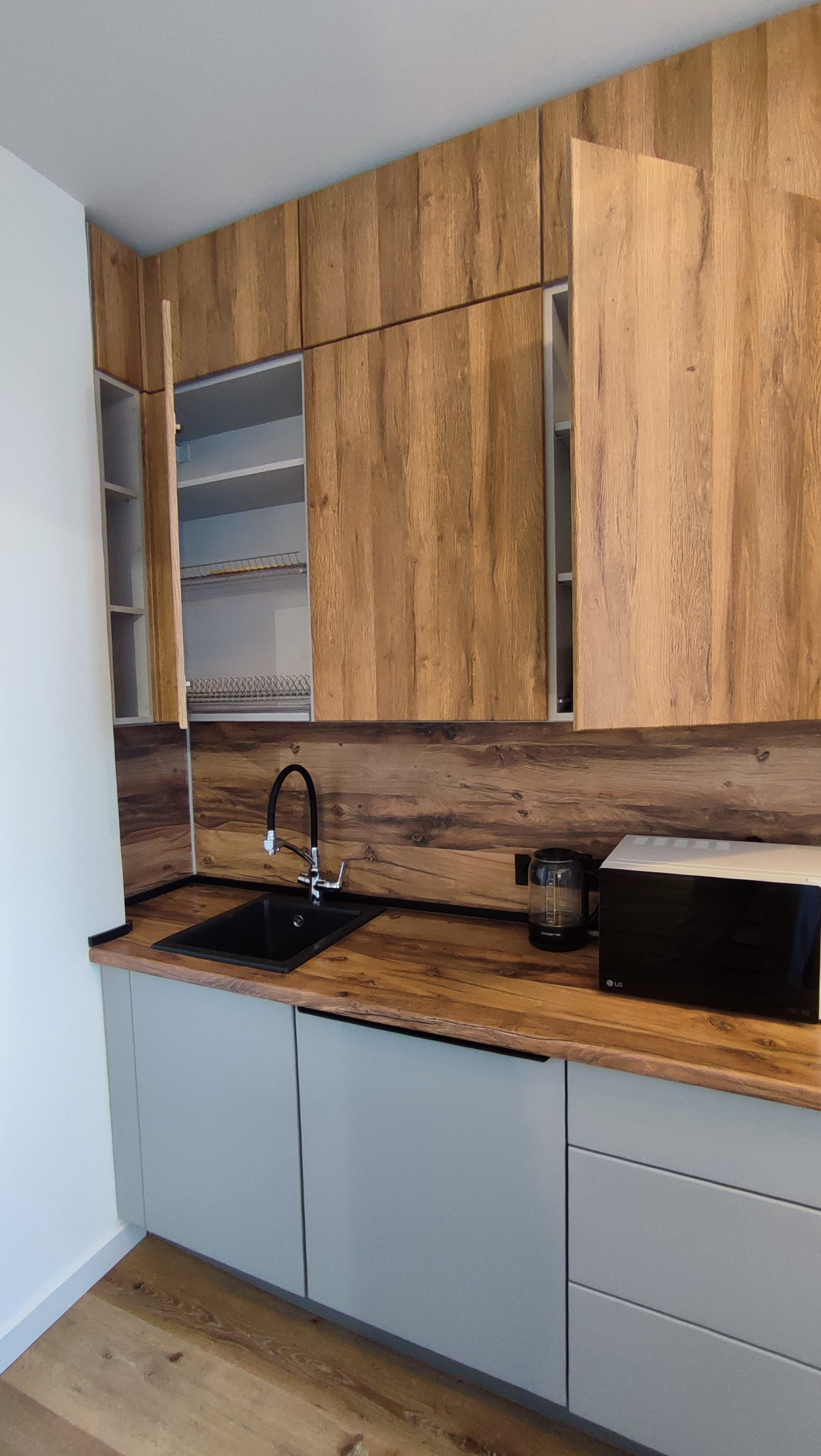 Во всей квартире на полу экологичное и гипоаллергенное дорогостоящее кварц-виниловое покрытие.