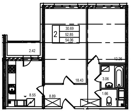 Функционал квартиры: просторная прихожая (8,9), совмещенный сан узел (4,7), кухня (17), детская/гостевая/кабинет (12,2), спальня-гостинная (18,3), кухня с вместительными шкафами для хранения. Высотка потолков 2,75 м.