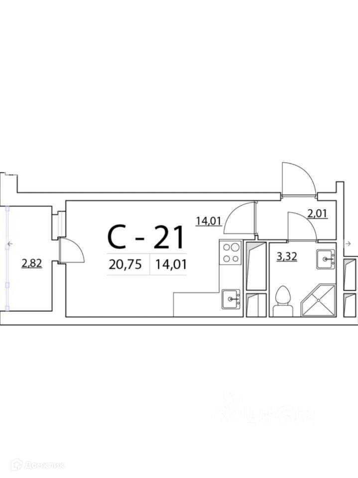 Общая площадь 20.2 м2
