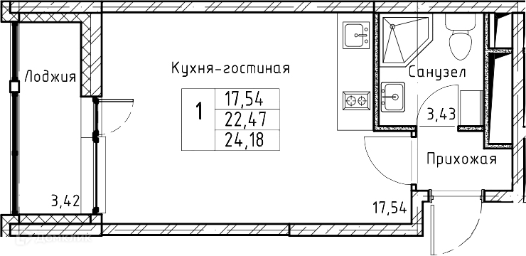 Общая площадь 24.41 м2