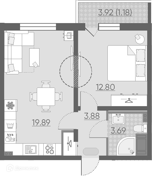 Площадь кухни 19.89 м2