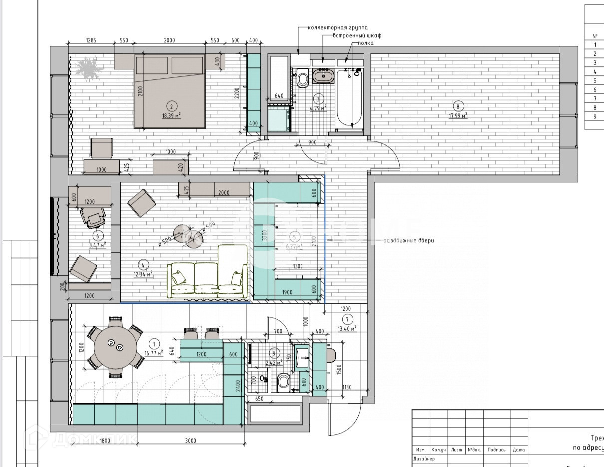 Планировка позволяет организовать квартиру формата 4-евро с кухней гостиной и 3 спальнями. Квартира продается без отделки, есть готовый дизайн-проект.